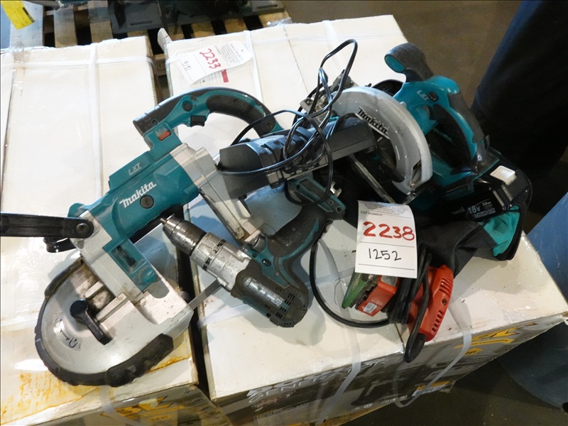 LOT, ASSORTED MAKITA 18V CORDLESS TOOLS W/BATTERY, CHARGER & MILWAUKEE SANDER, 115V