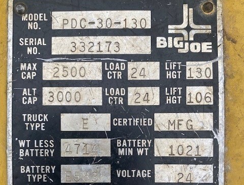 2,500 LB 130" POWER DRIVEN COUNTER BALANCED STACKER, 24V W/CHARGER, HOUR METER READS: 0043