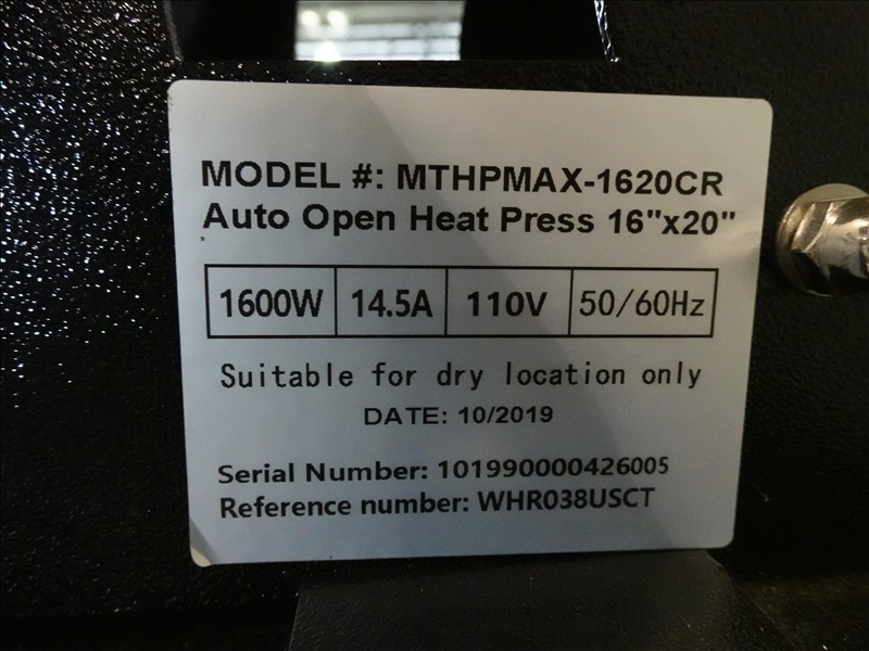 16" X 20" AUTO OPEN HEAT PRESS, 110V