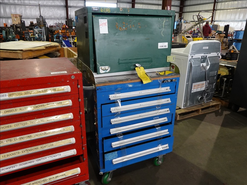 LOT, STANLEY/VIDMAR 6-DRAWER TOOLBOX ON CASTERS, 30"L X 28"D X 39"H W/STORAGE CABINET, 30"L X 21-1/2"D X 21"H