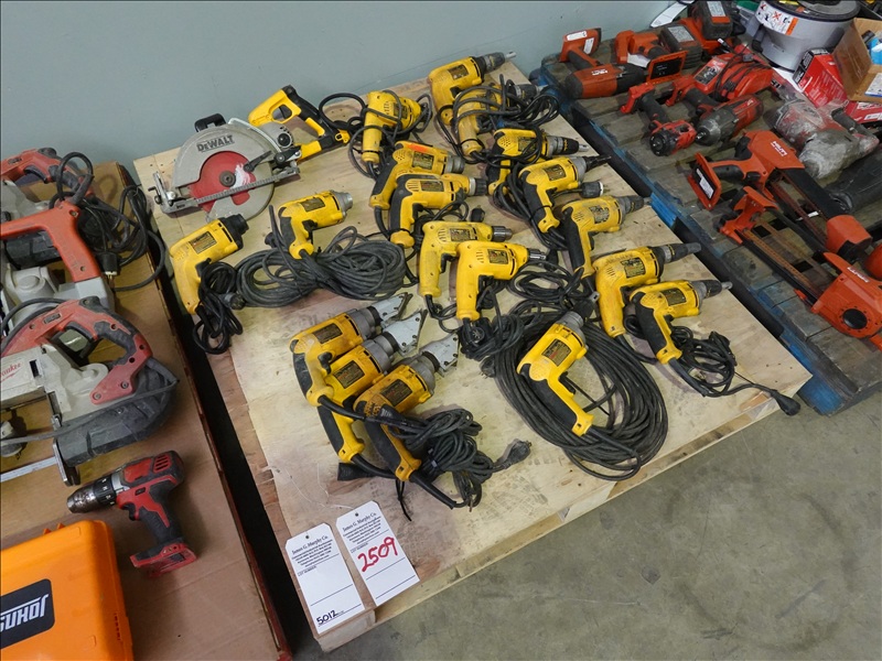 LOT, ASSORTED DEWALT CORDED TOOLS ON THIS PALLET