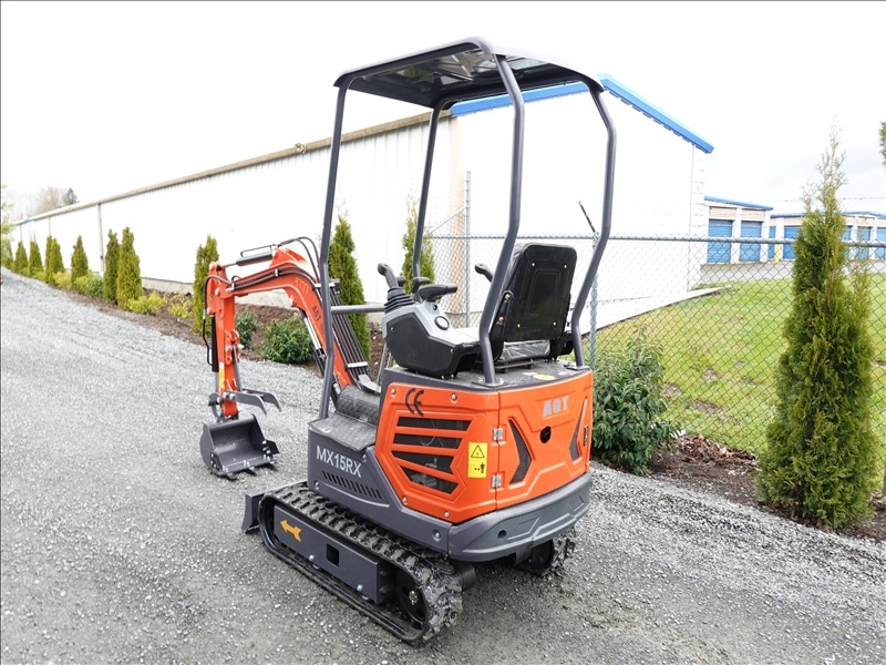 MINI EXCAVATOR, RATO 15 1 CYL GAS, 13" BUCKET, THUMB, AUX HYD, BLADE, RUBBER TRACKS, CANOPY