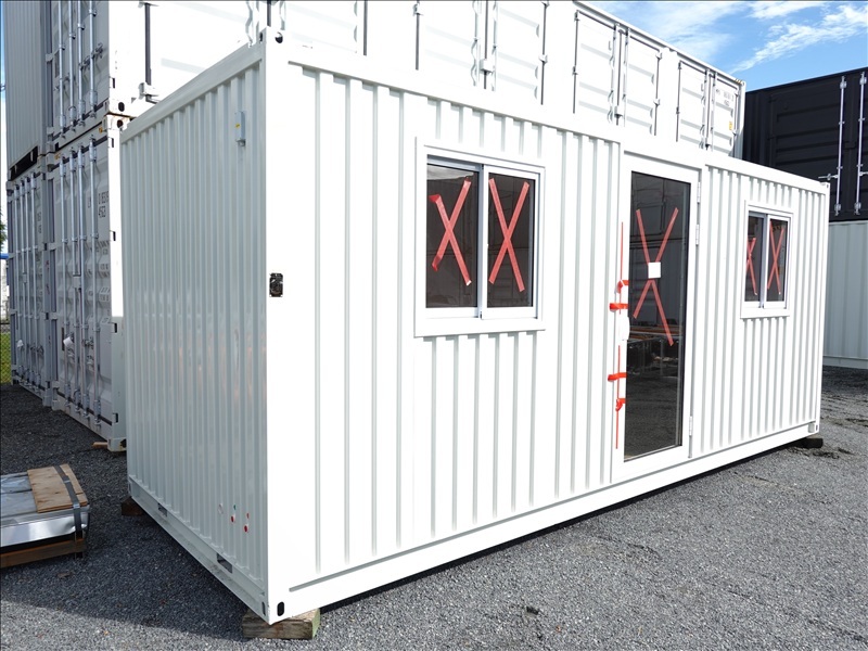 20' X 7' X 8' CONTAINER HOUSE W/SIDE DOOR, WINDOWS, SINKE & LIGHTS W/FORK POCKETS (UNUSED, MEASUREMENTS ARE APPROX, NO REMOVAL UNTIL WEDNESDAY, APRIL 23RD)