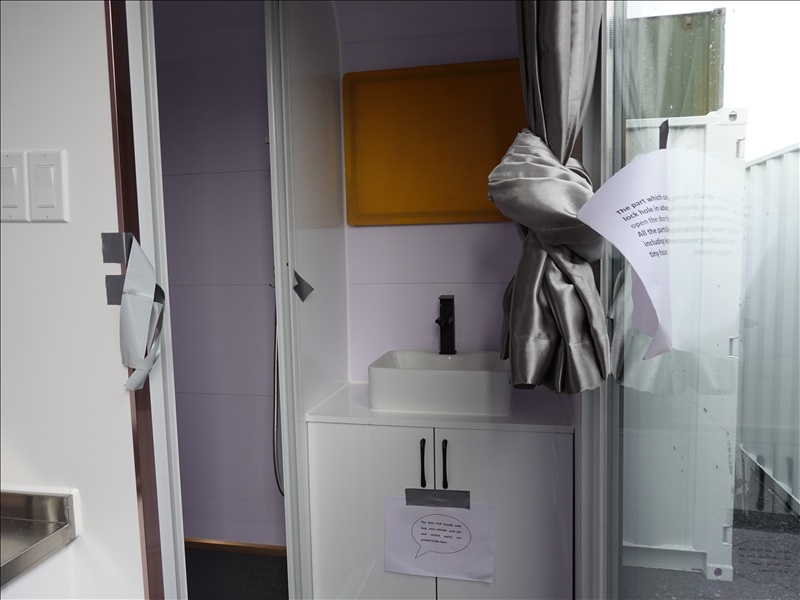 20' X 7' X 8' PREFAB TINY CUBE W/TOILET, SINKS, SHOWER, LIGHTS, FUME EXTRACTOR & FORK POCKETS, 110V (UNUSED, MEASUREMENTS ARE APPROX, NO REMOVAL UNTIL WEDNESDAY, APRIL 23RD)