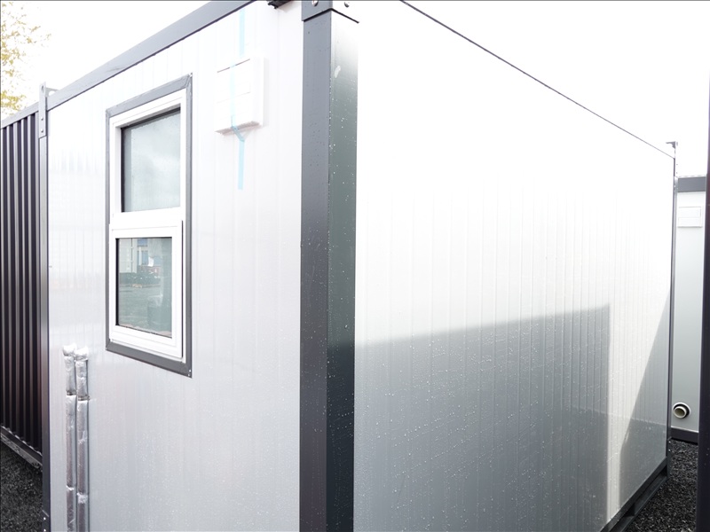 11.5' X 7' X 8' MULTI-FUNCTIONAL MOBILE OFFICE W/SIDE DOOR, WINDOWS, TOILET, SINK, SHOWER, LIGHTS & FUME EXTRACTOR (UNUSED, MEASUREMENTS ARE APPROX)