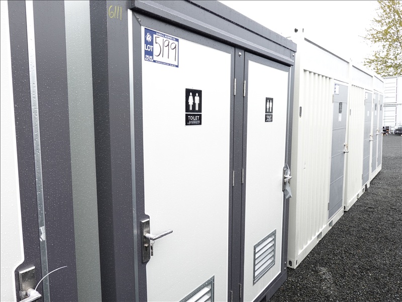 6.5' X 4' X 7.5' 2-STALL PORTABLE RESTROOM W/TOILETS, SINKS, LIGHTS, FUME EXTRACTORS & FORK POCKETS (UNUSED, MEASUREMENTS ARE APPROX)
