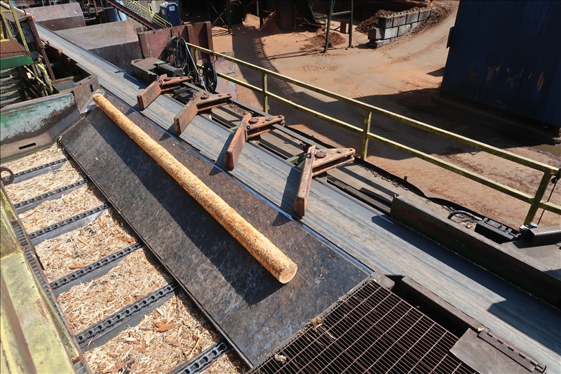 APPROX. 30"X150' LOG BELT TRANSFER W/(13) LOG KICKERS W/DRIVE