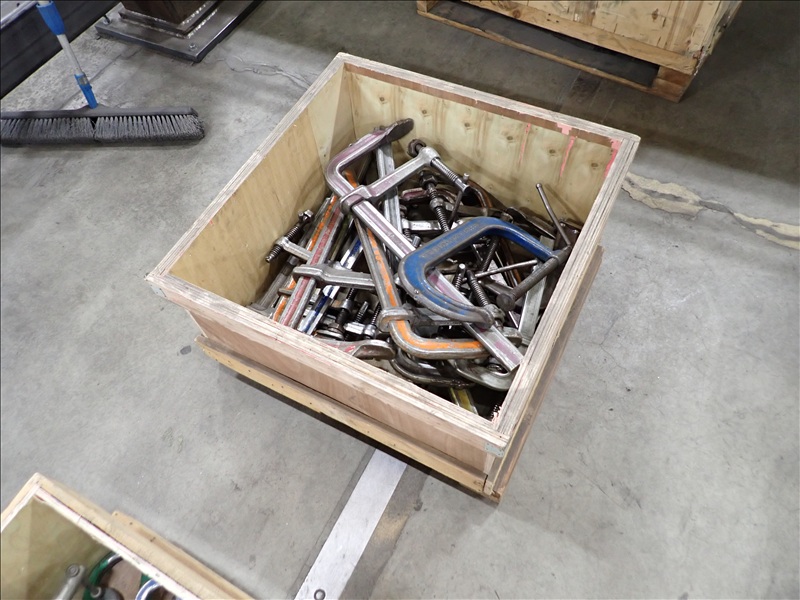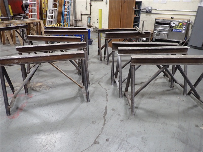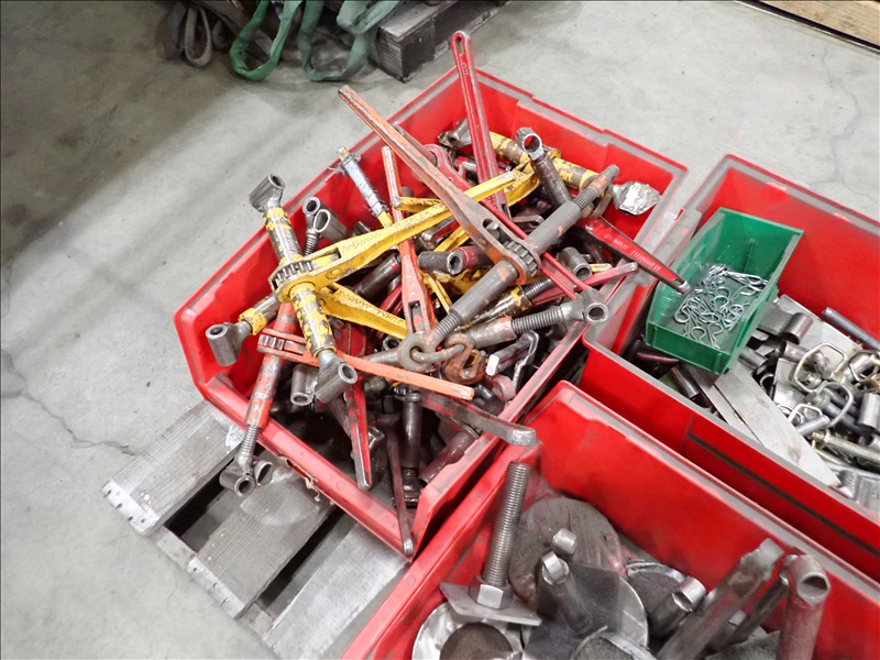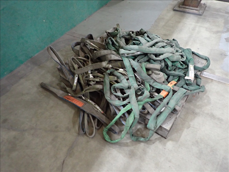 GROUP OF C-CLAMPS, SOFT SLINGS , CHAIN BINDERS & STEEL SAWHORSES