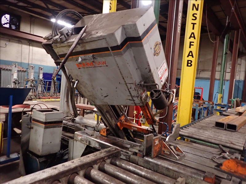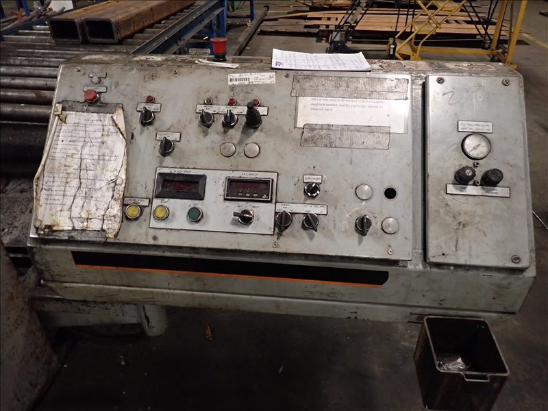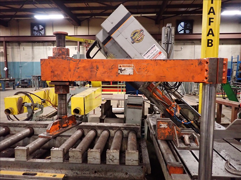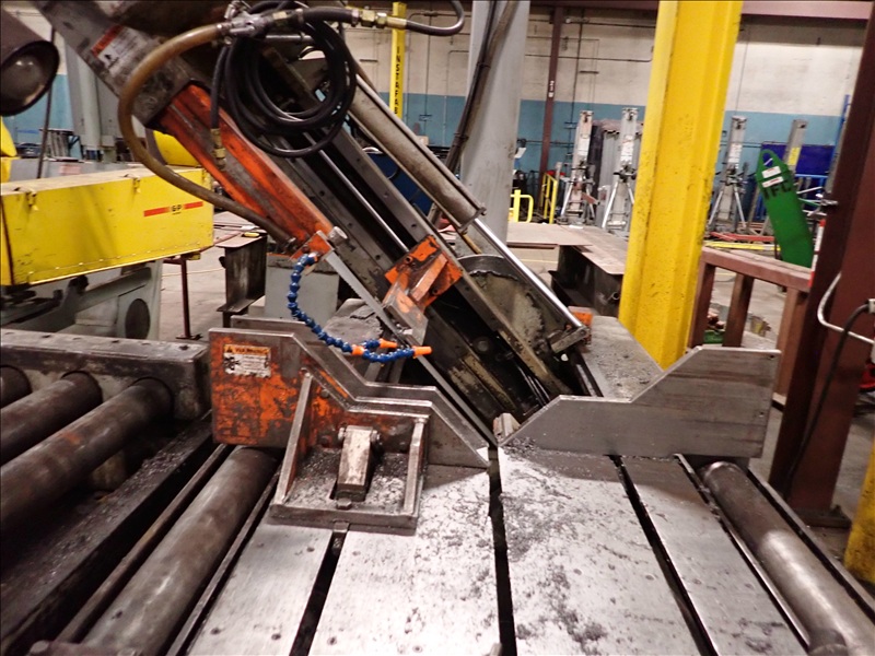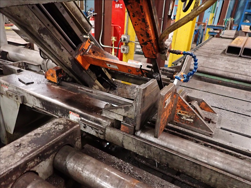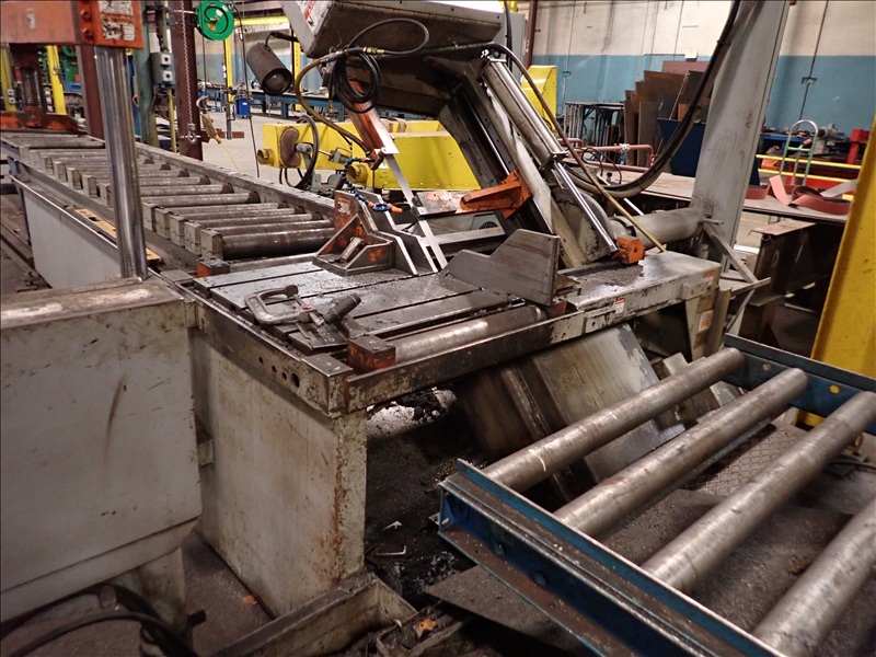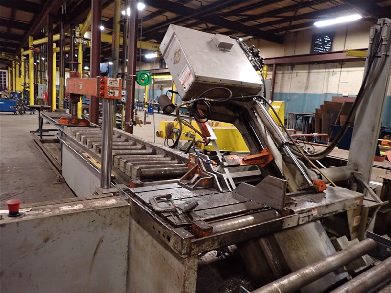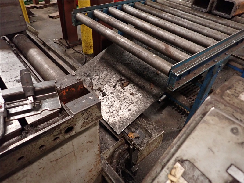 SEMI-AUTOMATIC VERTICAL TILTING HEAD METAL CUTTING MITER SAW, POWER FEED ROLLS, CLAMP, COOLENT, CONTROLS, S/N: 588597
