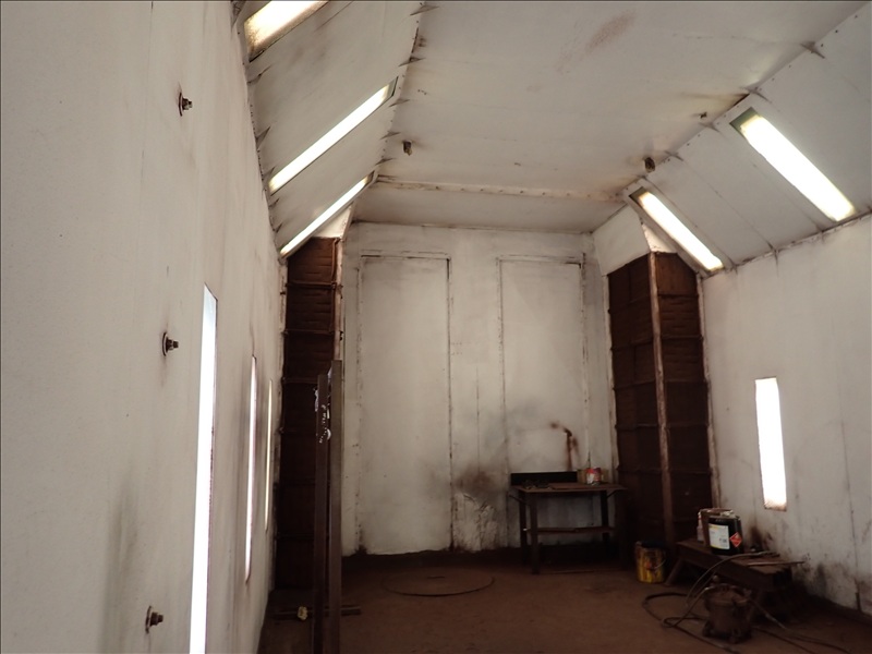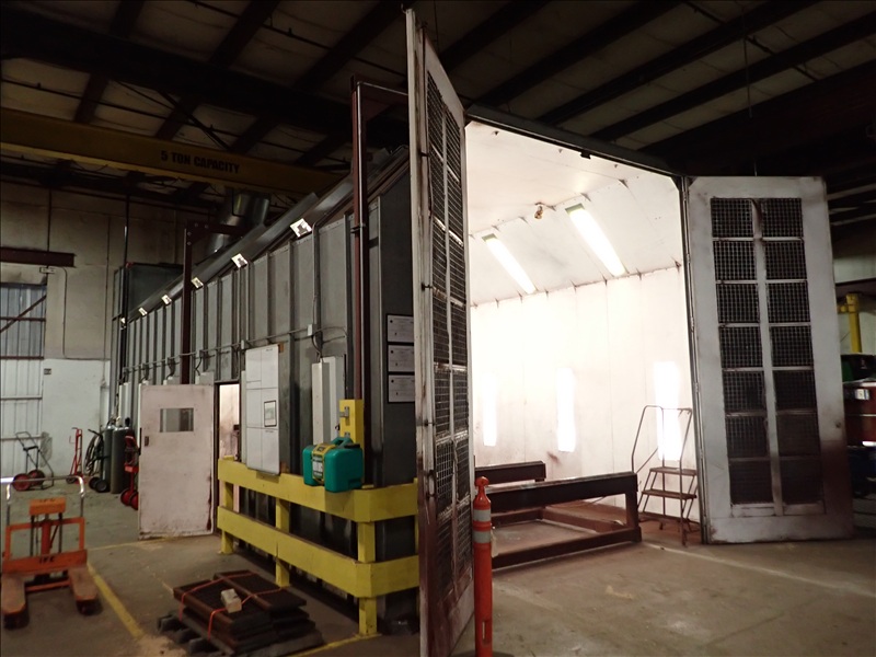 16'X40'X14' LIGHTED SPRAY BOOTH, FILTER SYSTEM, (2) MAN DOORS, BARN DOORS & CONTROLS