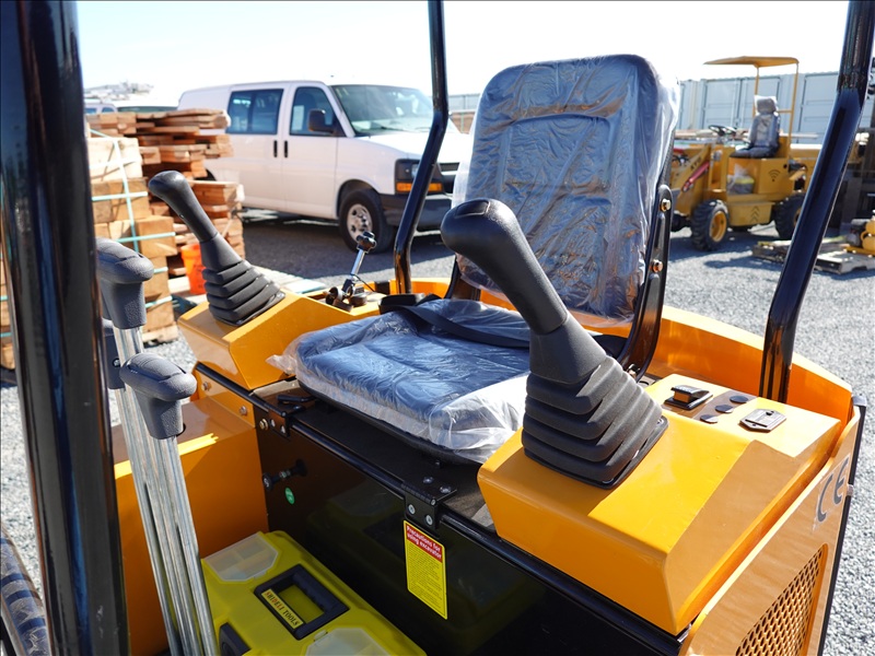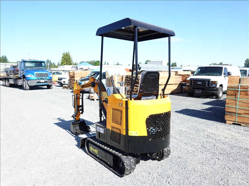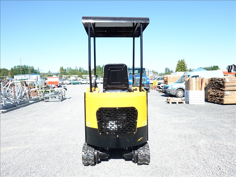 MINI EXCAVATOR, 420 CC 1 CYL GAS, 13" BUCKET, THUMB, BLADE, RUBBER TRACKS, CANOPY