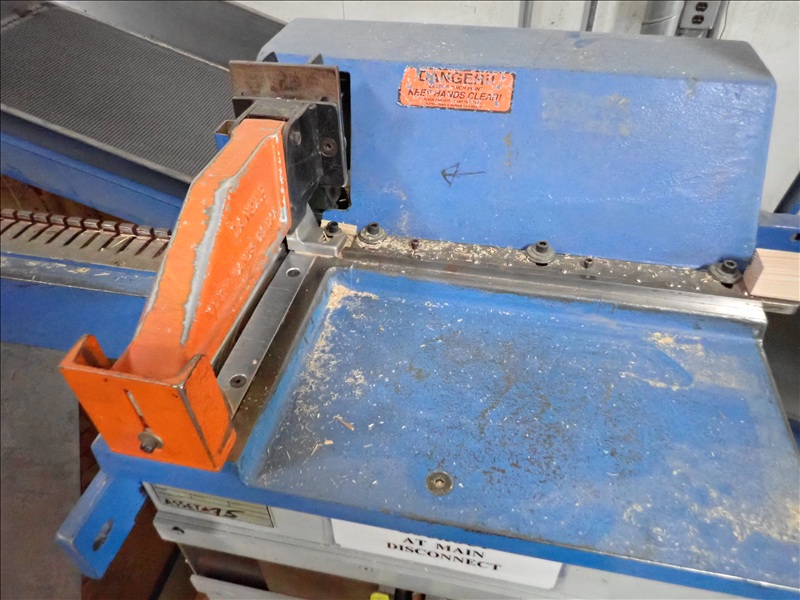 TRIM STATION W/PRECISION 14A UP CUT SAW, SCISSOR LIFT ON RAILS, 24" WASTE BELT CONVEYOR, LANDING TABLE, CATWALK