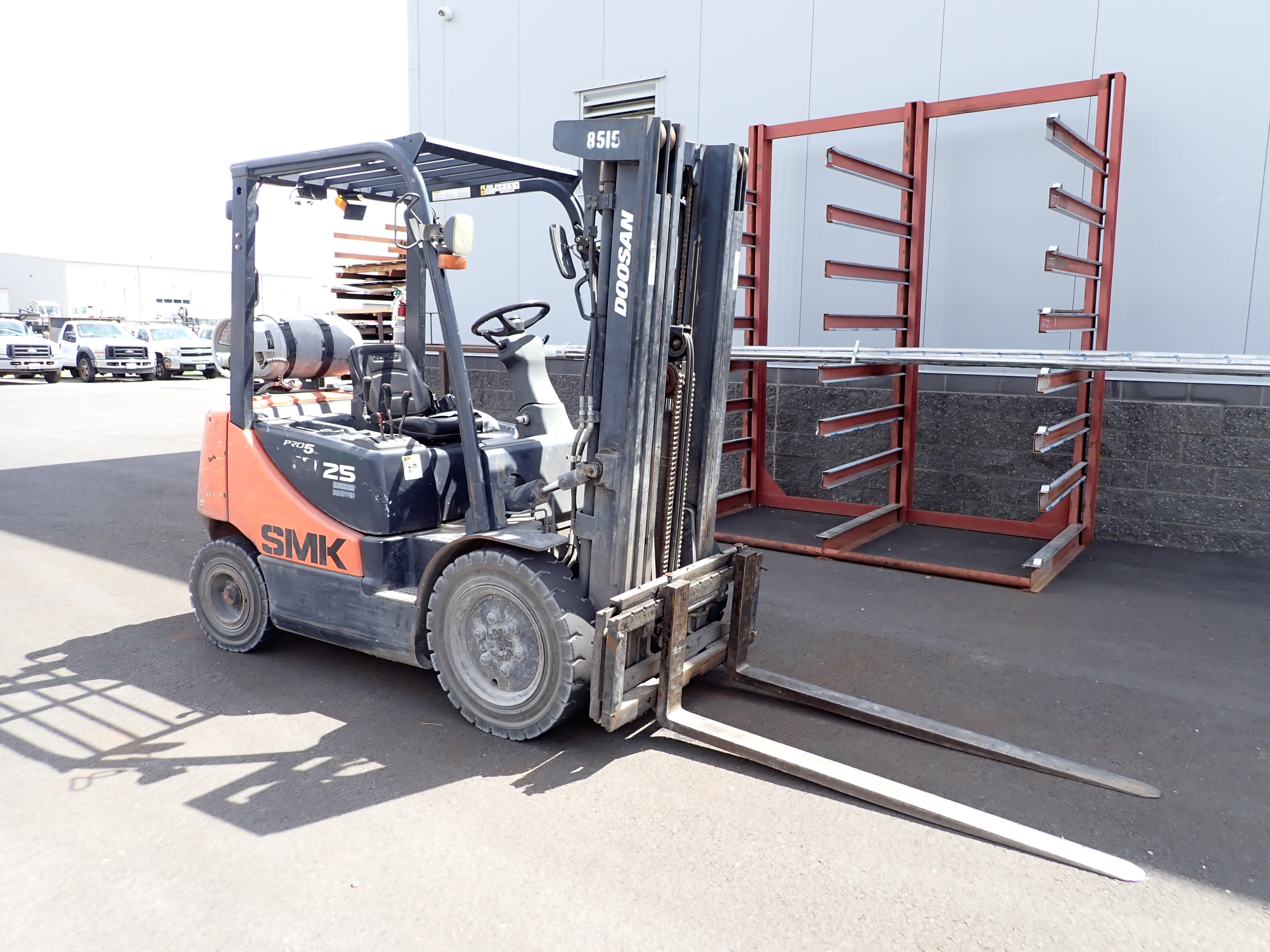 4,600 LB CAP. CUSHION TIRED FORKLIFT, 189" 3-STAGE MAST, SIDE SHIFT, 60" FORKS, PROPANE