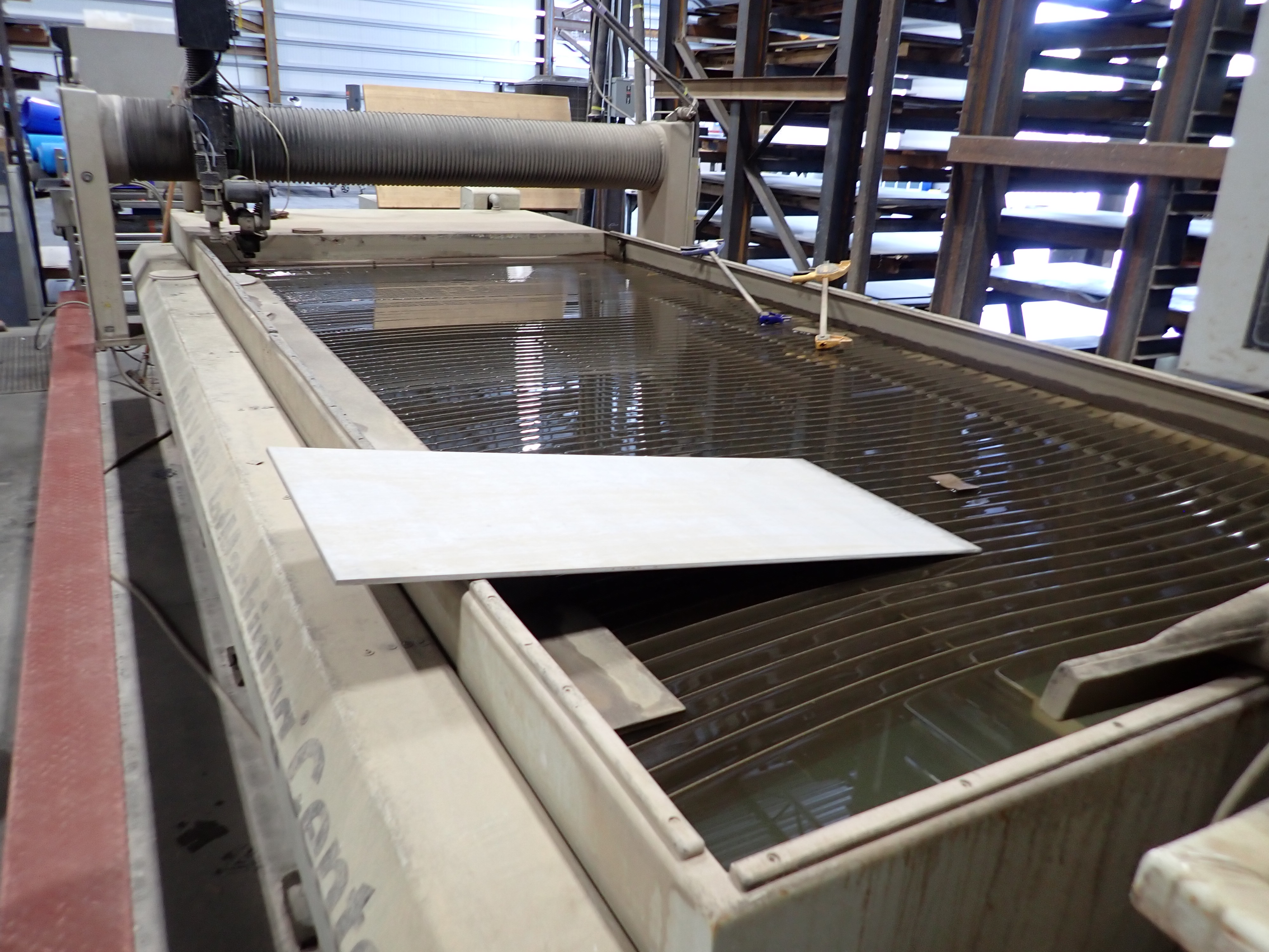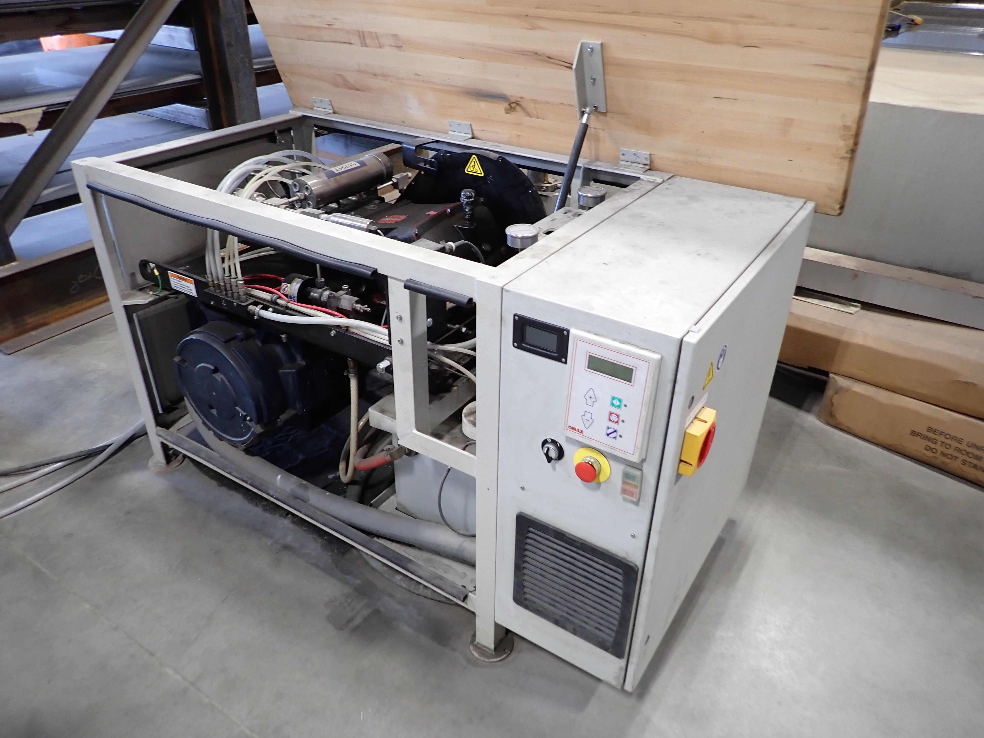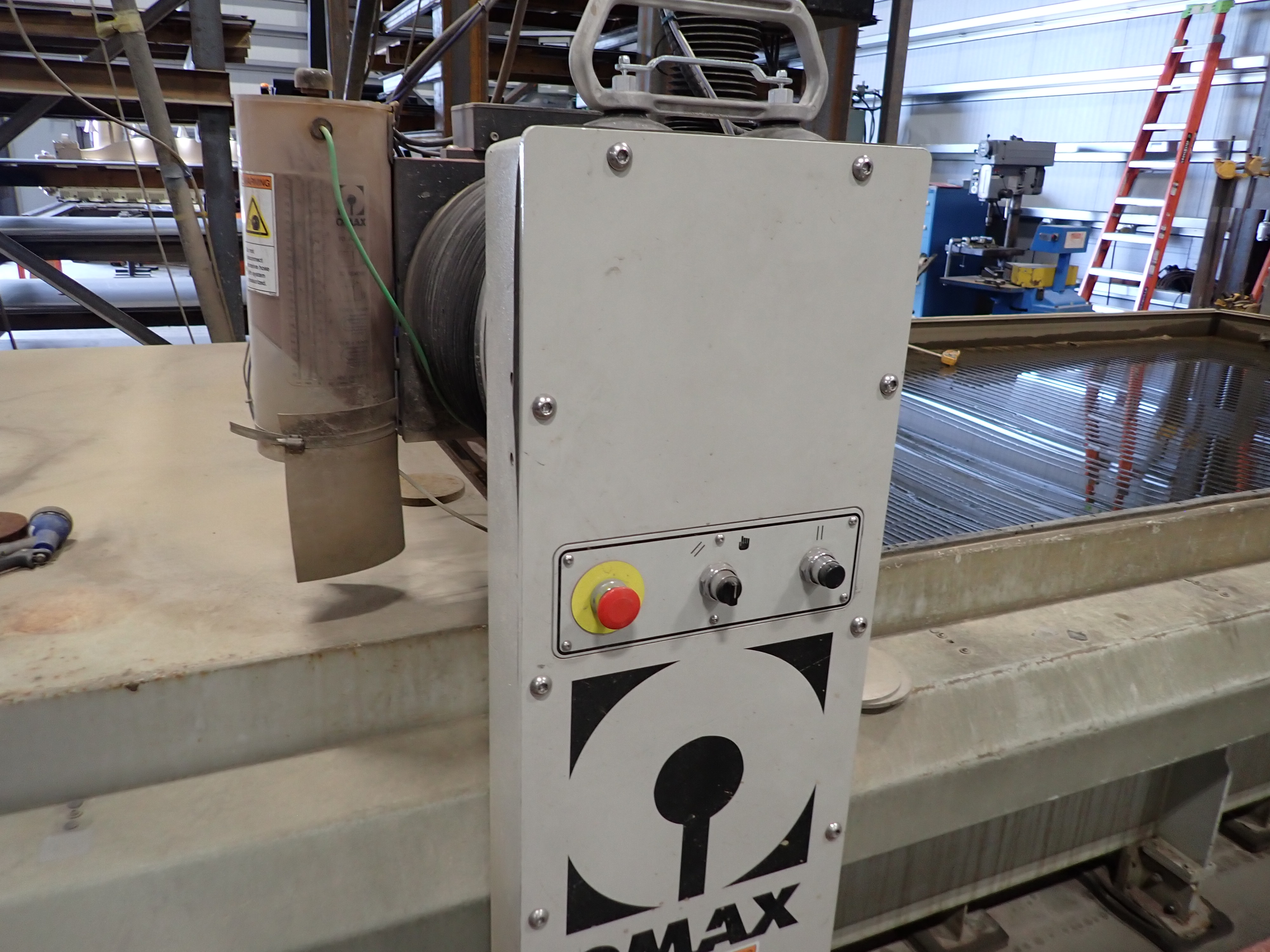 CNC WATERJET, 7'X14' TABLE, P5060V PUMP, SOLIDS REMOVAL HOPPER, EBBCO FILTER BIN, CHILLER, 6,000 LB MEDIA HOPPER, CUSTOM BUILT HOPPER FILL STATION, CONTROLS