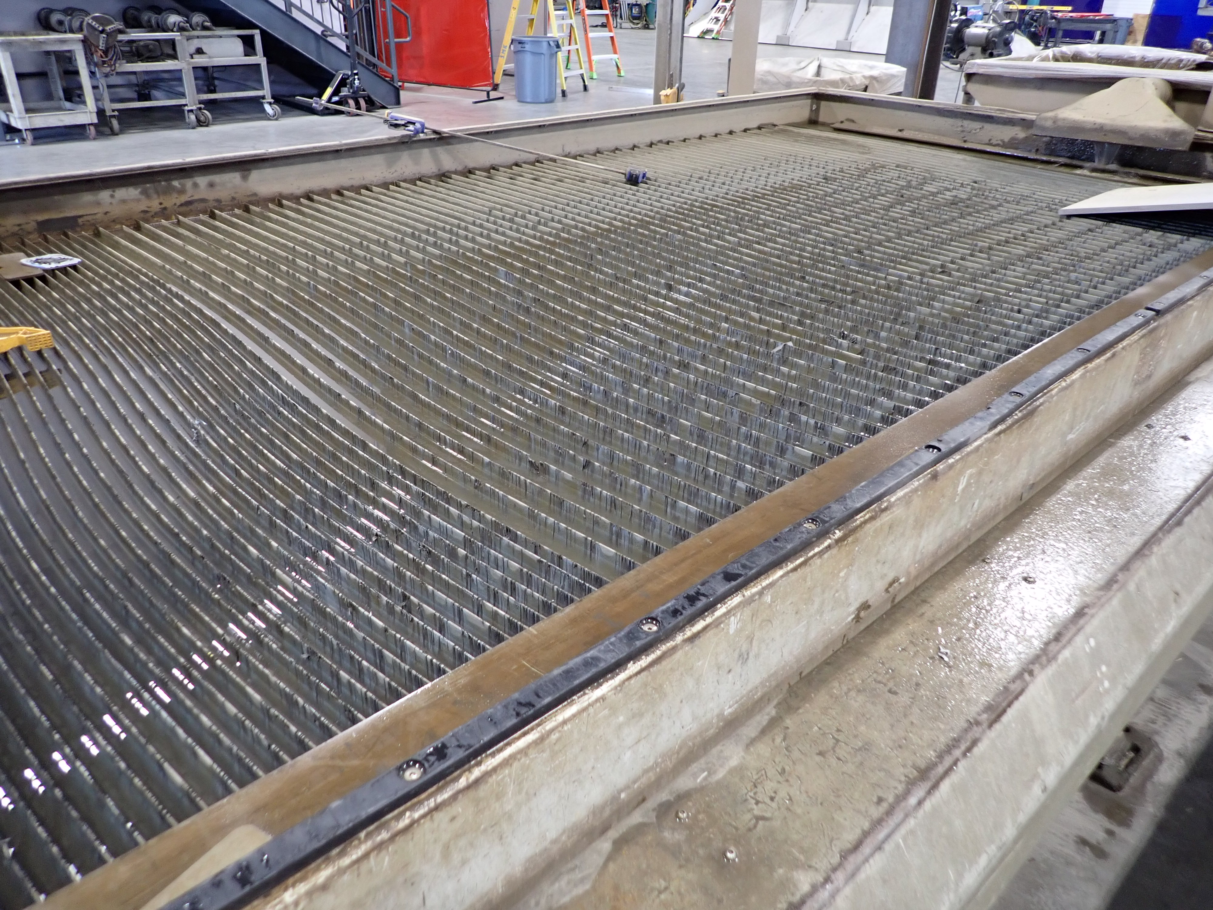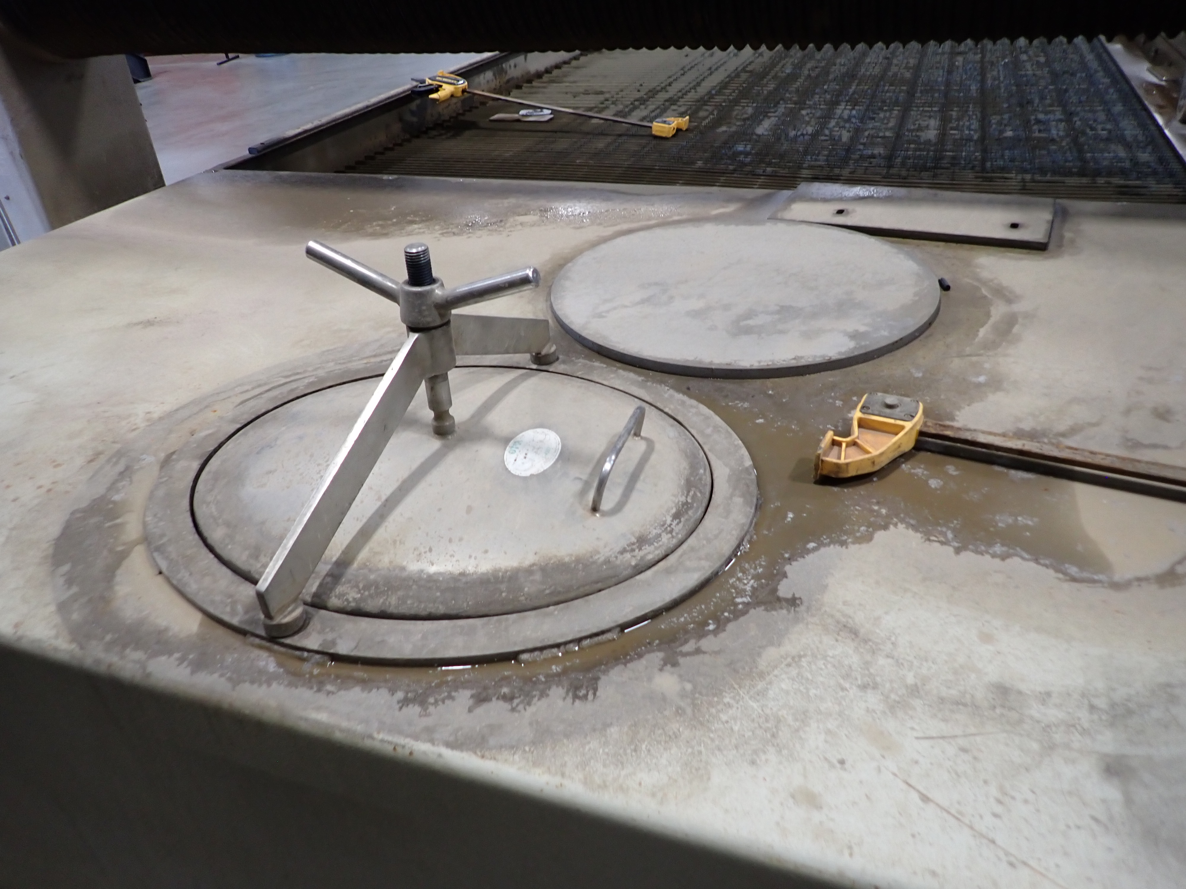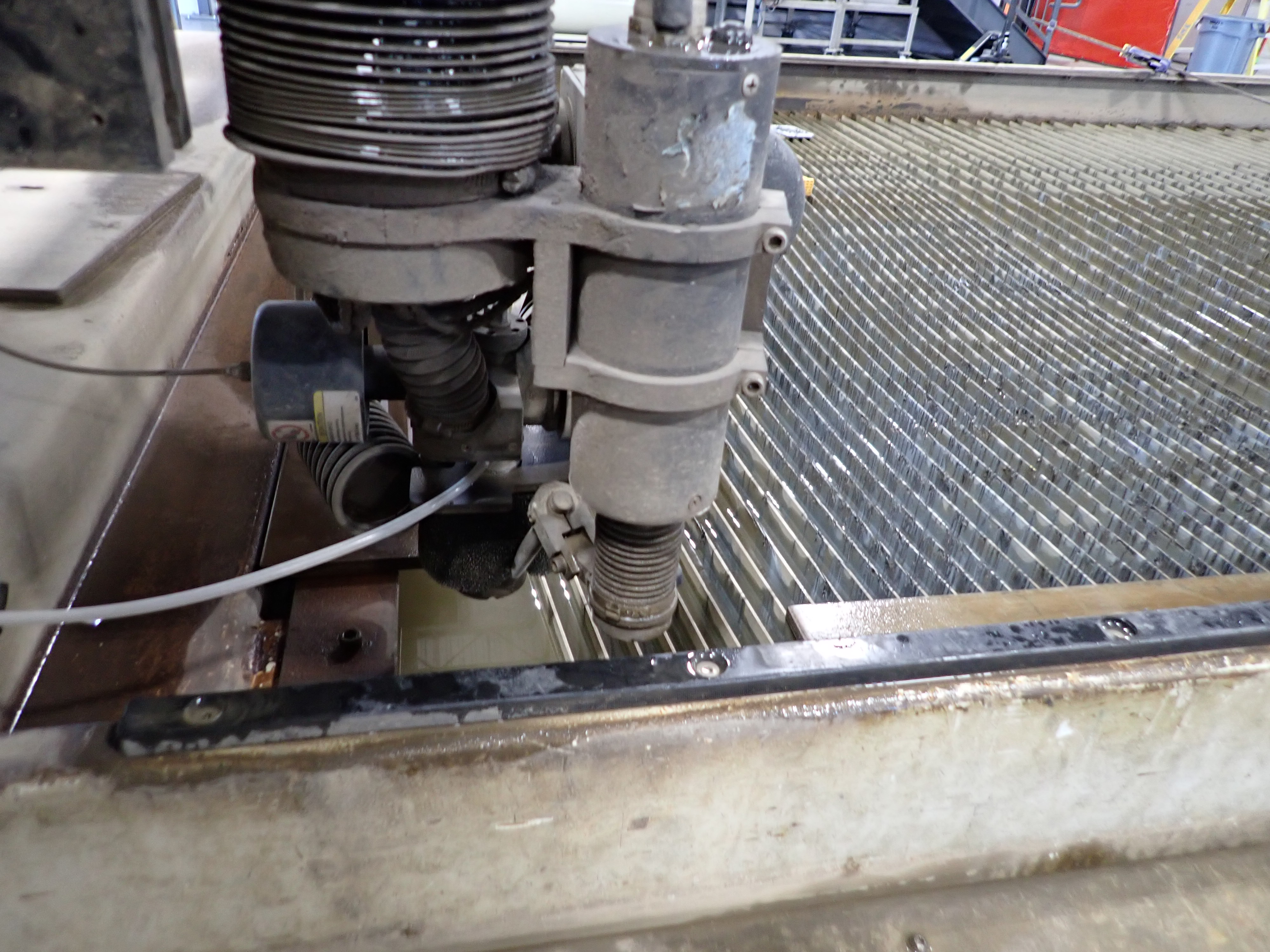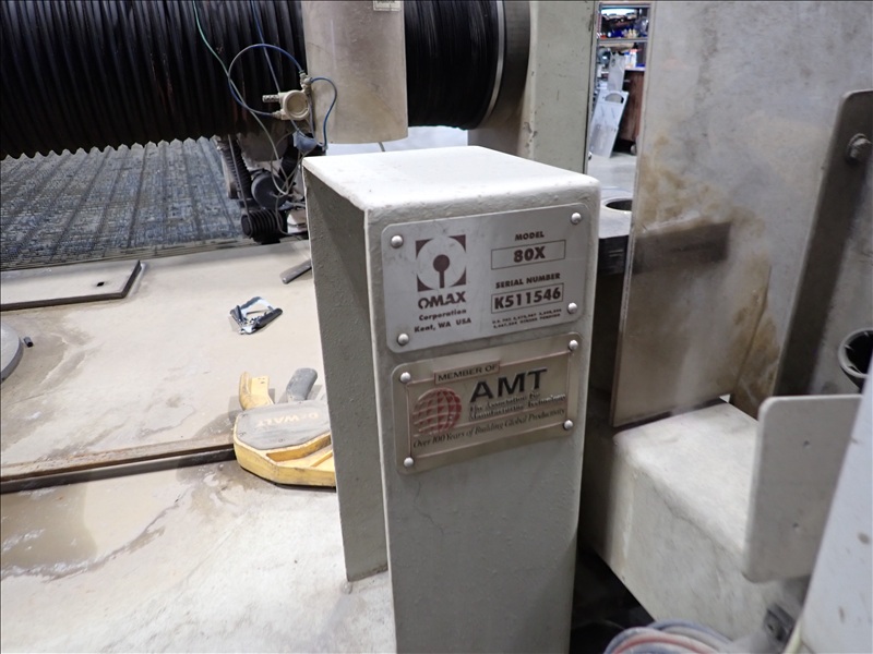 CNC WATERJET, 7'X14' TABLE, P4055V PUMP, SOLIDS REMOVAL HOPPER, EBBCO FILTER BIN, DIMPLEX CHILLER, CLEMCO 6.0CF MEDIA HOPPER, CUSTOM BUILT HOPPER FILL STATION, CONTROLS
