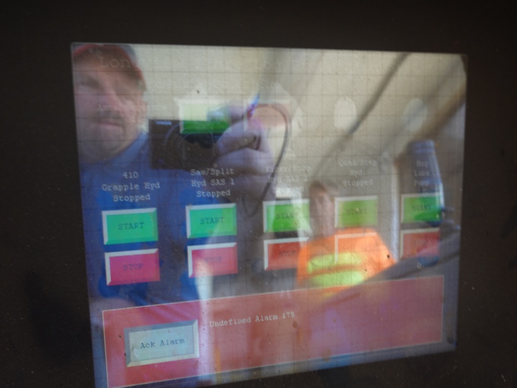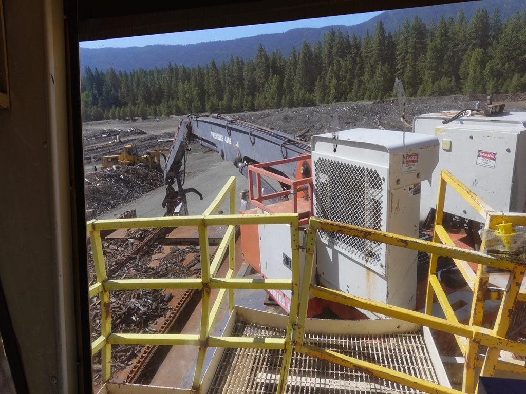 PEDESTAL MOUNT LOG LOADER, 100 HP HYDRAULIC MOTOR, OPERATORS CAB W/CONTROLS