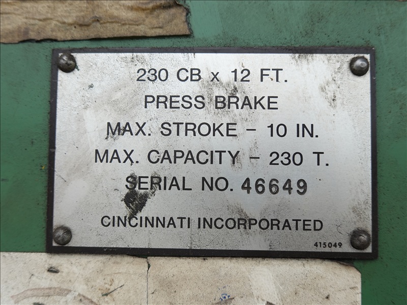 230 TON, 12' BED, 10" STROKE, ( BUYER IS RESPONSIBLE TO HIRE RIGGER FOR REMOVEL. WE DO NOT HAVE A FORKLIFT AVAILABLE TO ASSIST )