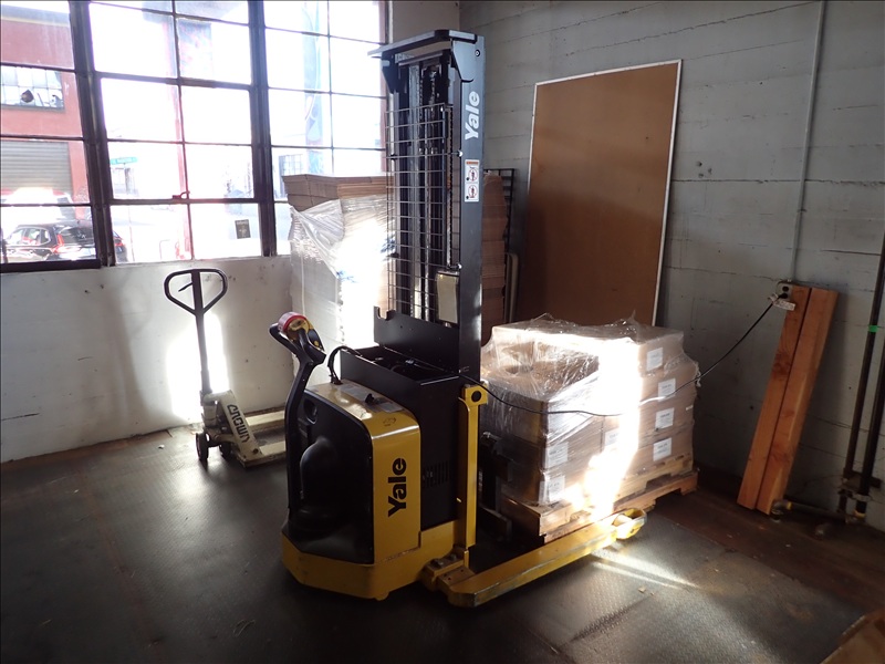 2,500 LB CAP. WALK BEHIND ELECTRIC STACKER, 144" 2-STAGE MAST, CHARGER, S/N: B895N04773M