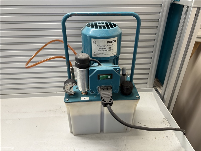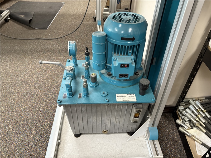 HYDRAULIC TRAINING PLATFORM WORK STATION SYSTEM ON CASTORS W/BOSCH WV12-RGC2 TEST STATION, AMPLIFIER MODULE, (2) PORTABLE HYDRAULIC POWER UNITS, ASSORTED VALVES, ACCESSORY PARTS & HOSE