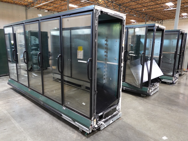 (3) HUSSMANN RLN-5 12' 5-DOOR REFRIGERATED MERCHANDISERS, DIGITAL TEMP, LIGHTS