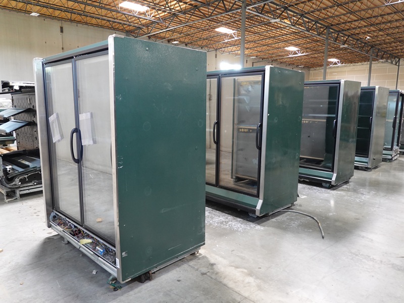 (4) HUSSMANN RLN-2 6' 2-DOOR REFRIGERATED MERCHANDISERS, DIGITAL TEMP, LIGHTS