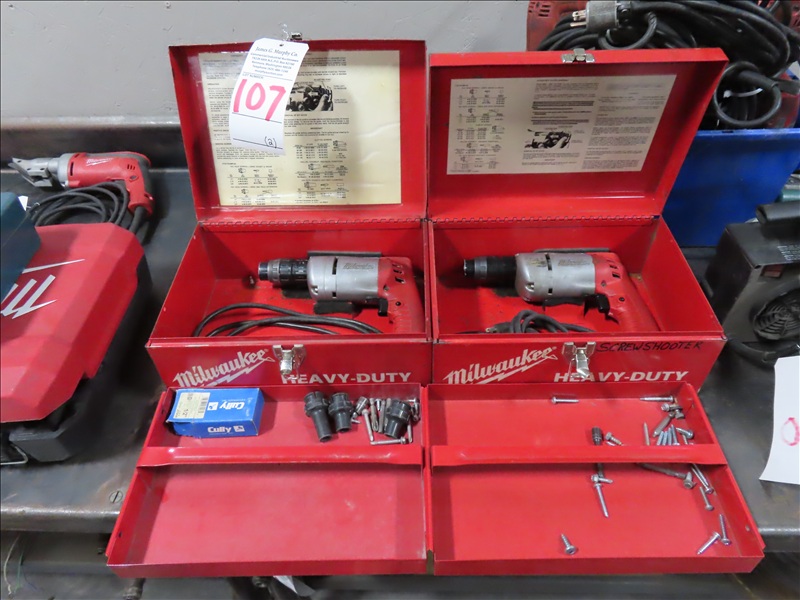 LOT, (2) ASSORTED MILWAUKEE DRILL SHOOTERS W/CASE, 120V