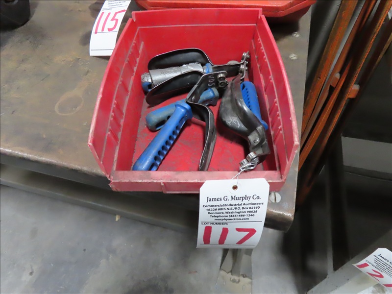 4 NOGA DOUBLE BURR SHEET METAL DEBURRING TOOLS IN THIS BIN W/BIN