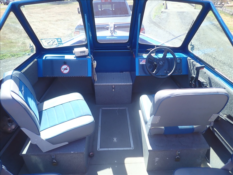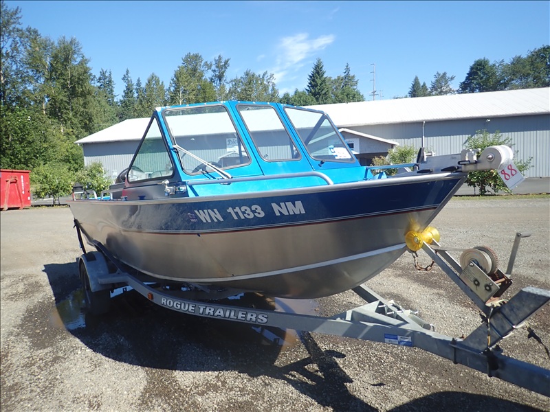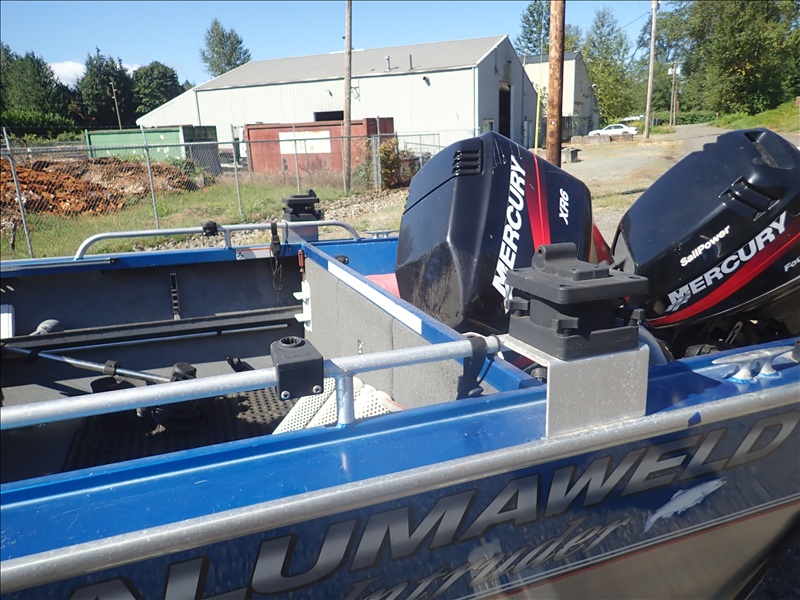 20' ALUMINUM FISHING BOAT, MERCURY XR6 150 HP OUTBOARD, MERCURY BIG FOOT 9.9 TROLLING OUTBOARD, (2) SCOTTY DOWNRIGGERS W/ROGUE S/A GALVANIZED TRAILER, HID: AWB18615G203