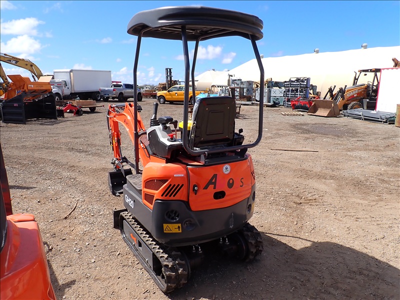 MINI EXCAVATOR, BUCKET, MECHANICAL THUMB, SWING BOOM, BLADE, CANOPY, RUBBER TRACKS