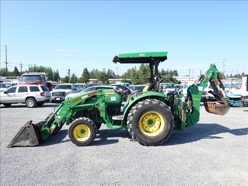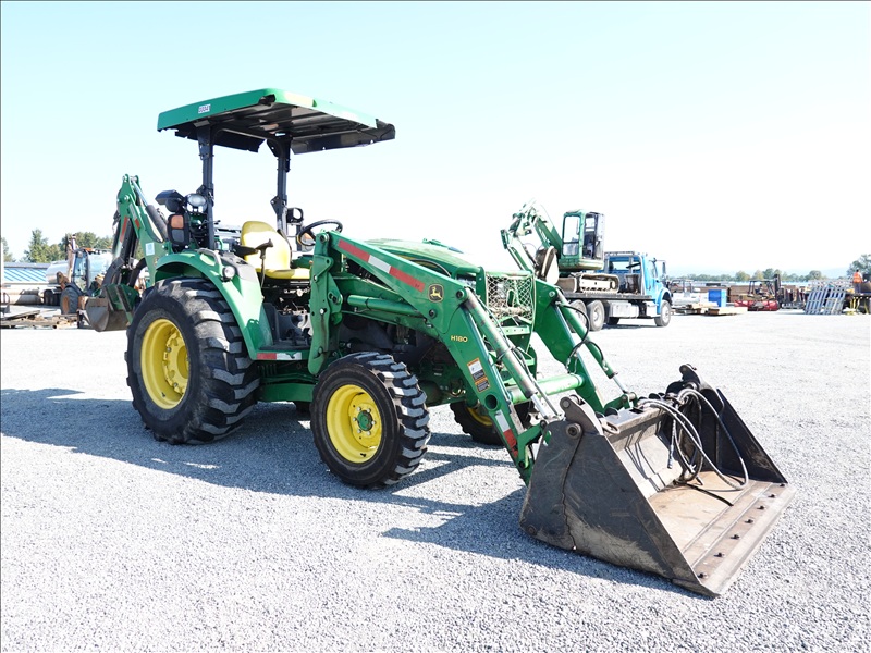MFWD TRACTOR, LOADER, BACKHOE, 43 HP YANMAR 4TNV88, EHYDRO W/CRUISE CONTROL, 4-IN-1 LOADER BUCKET, 24" DIGGING BUCKET, THUMB, (3) REMOTE HYD, PTO, 3-POINT, CANOPY (MISSING SIDE PANELS)