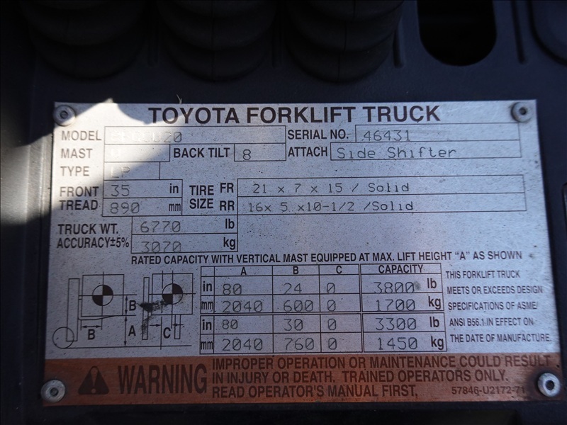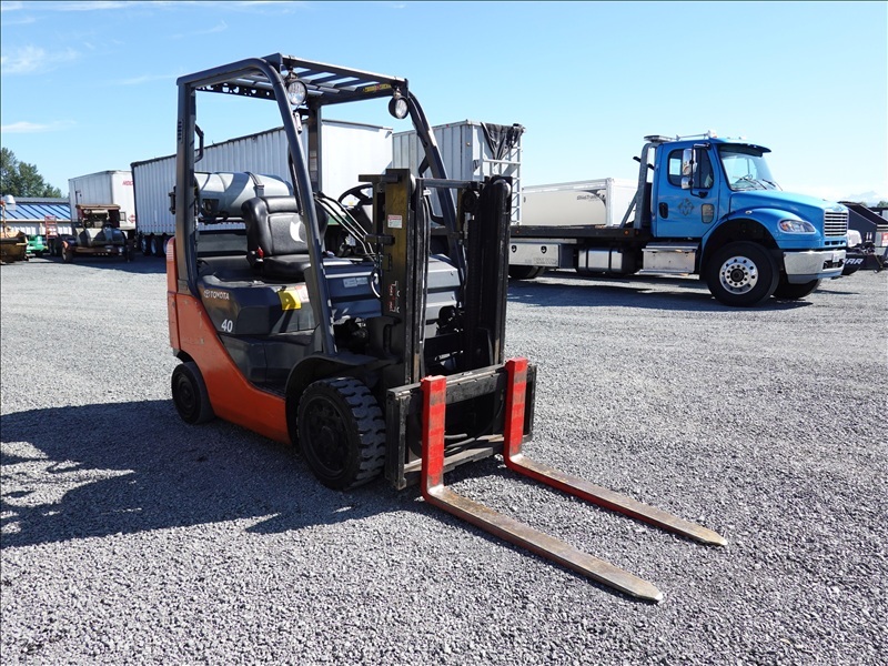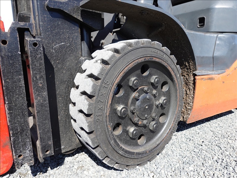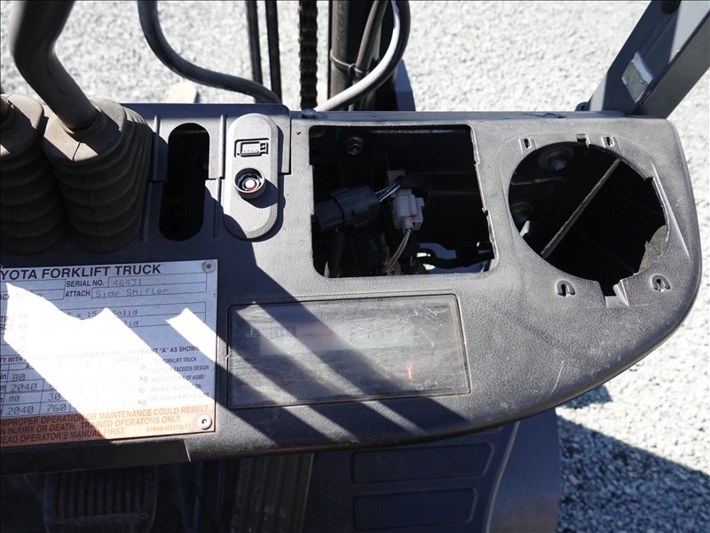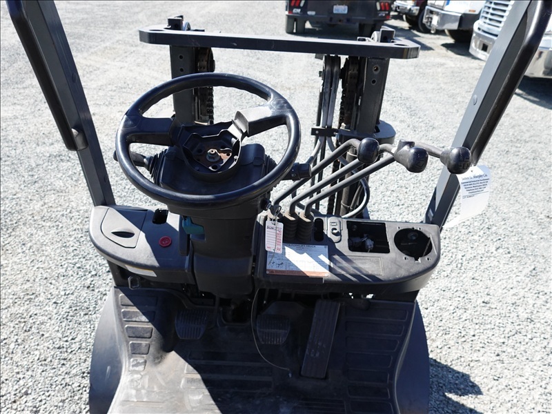 3,800 LB SOLID TIRE FORKLIFT, 80" FORK HEIGHT, 2-STAGE MAST, SIDE SHIFT, 4 CYL LPG