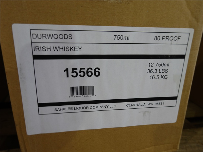 LOT, (72) 750 ML BOTTLES OF DURWOODS IRISH WHISKEY (6 CASES)