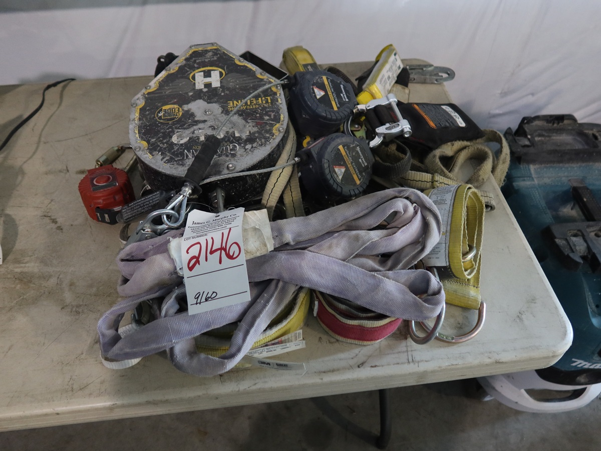 LOT, ASSORTED FALL PROTECTION RETRACTABLE LANYARDS, SAFETY LANYARDS & LIFTING STRAPS