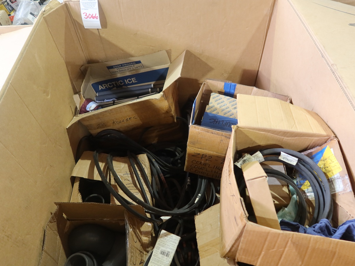 LOT, ASSORTED MARINE SUPPLIES TO INCLUDE: VARIOUS BELTS & PVC FITTINGS IN THIS BIN (MUST TAKE BIN)