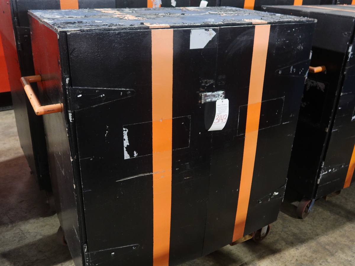 APPROX 29" X 49" X 49" 2-SIDED TOOL STORAGE CABINET ON CASTERS W/FORK POCKETS