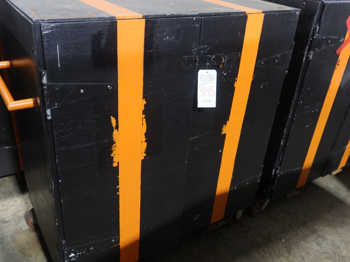 APPROX 29" X 49" X 49" 2-SIDED TOOL STORAGE CABINET ON CASTERS W/FORK POCKETS