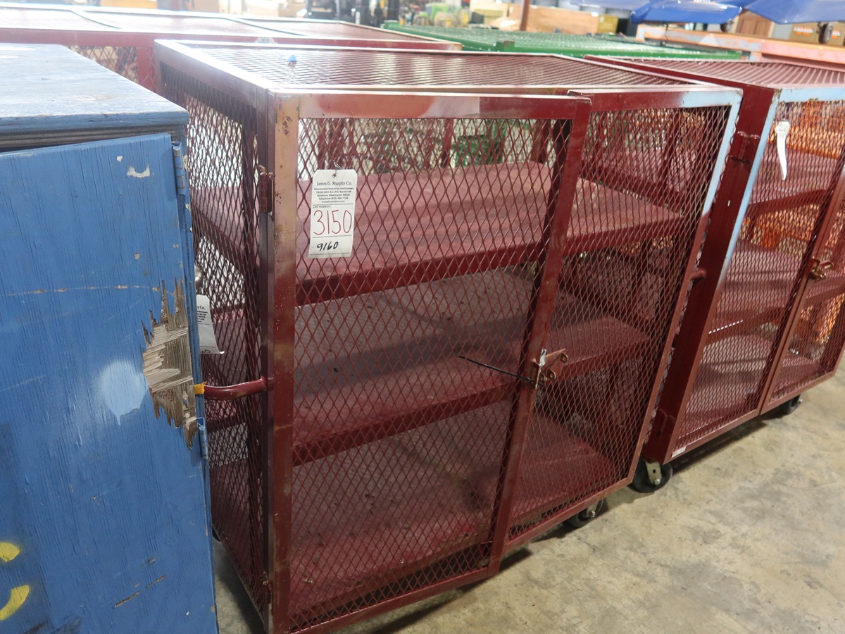 APPROX 26" X 49" X 49" WIRE MESH TOOL STORAGE CABINET ON CASTERS