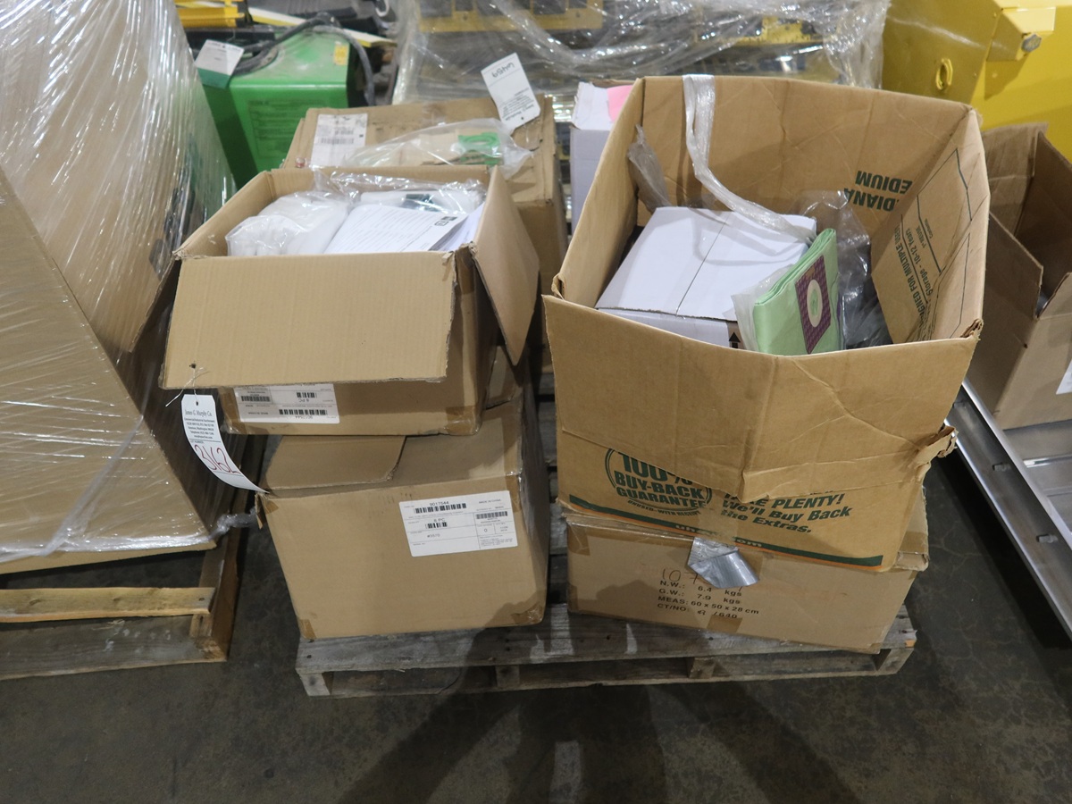 LOT, ASSORTED DISPOSABLE VACUUM BAGS & FLOOR BUFFER PADS ON THIS PALLET