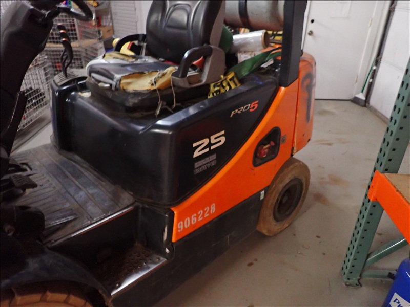 4,600 LB CAP. CUSHION TIRED FORKLIFT, 186" 3-STAGE MAST, SIDE SHIFT, DUAL FUEL, S/N: KGA0B-1330-02244, HRS: 1,200