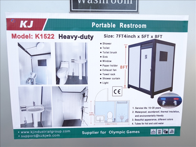 PORTABLE RESTROOM W/TOILET, SHOWER, SINK & LIGHT
