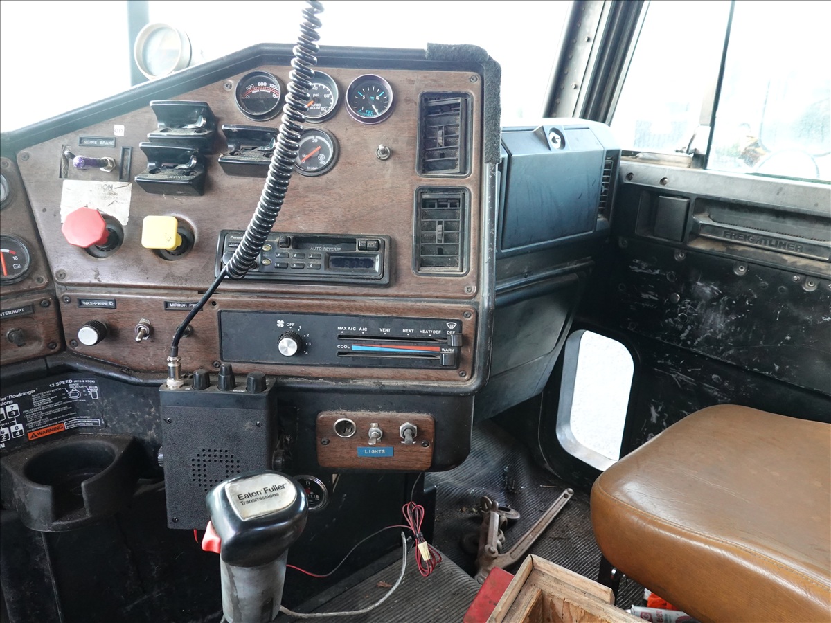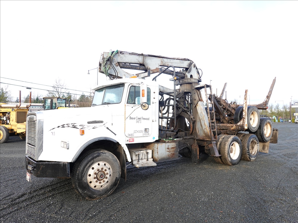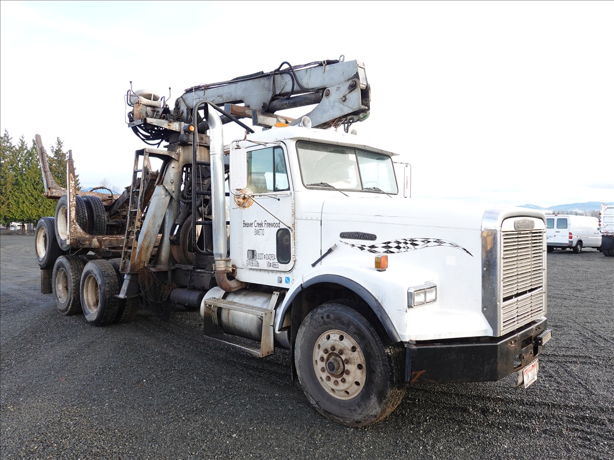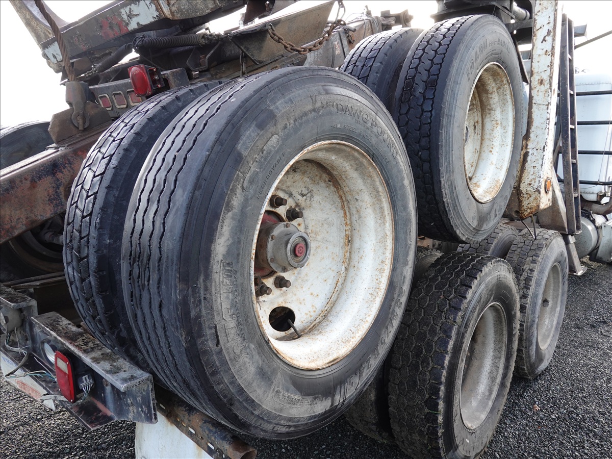 T/A, LOG TRUCK, SELF LOADER W/HYD OUTRIGGERS, 444 HP CUMMINS NTC, 13 SPD, AIR SUSPENSION, 231" W/B, A/B, DOUBLE FRAME, DOUBLE LOCKERS W/ T/A LOG TRAILER, EXPANDABLE TONGUE, 285/75R24.5