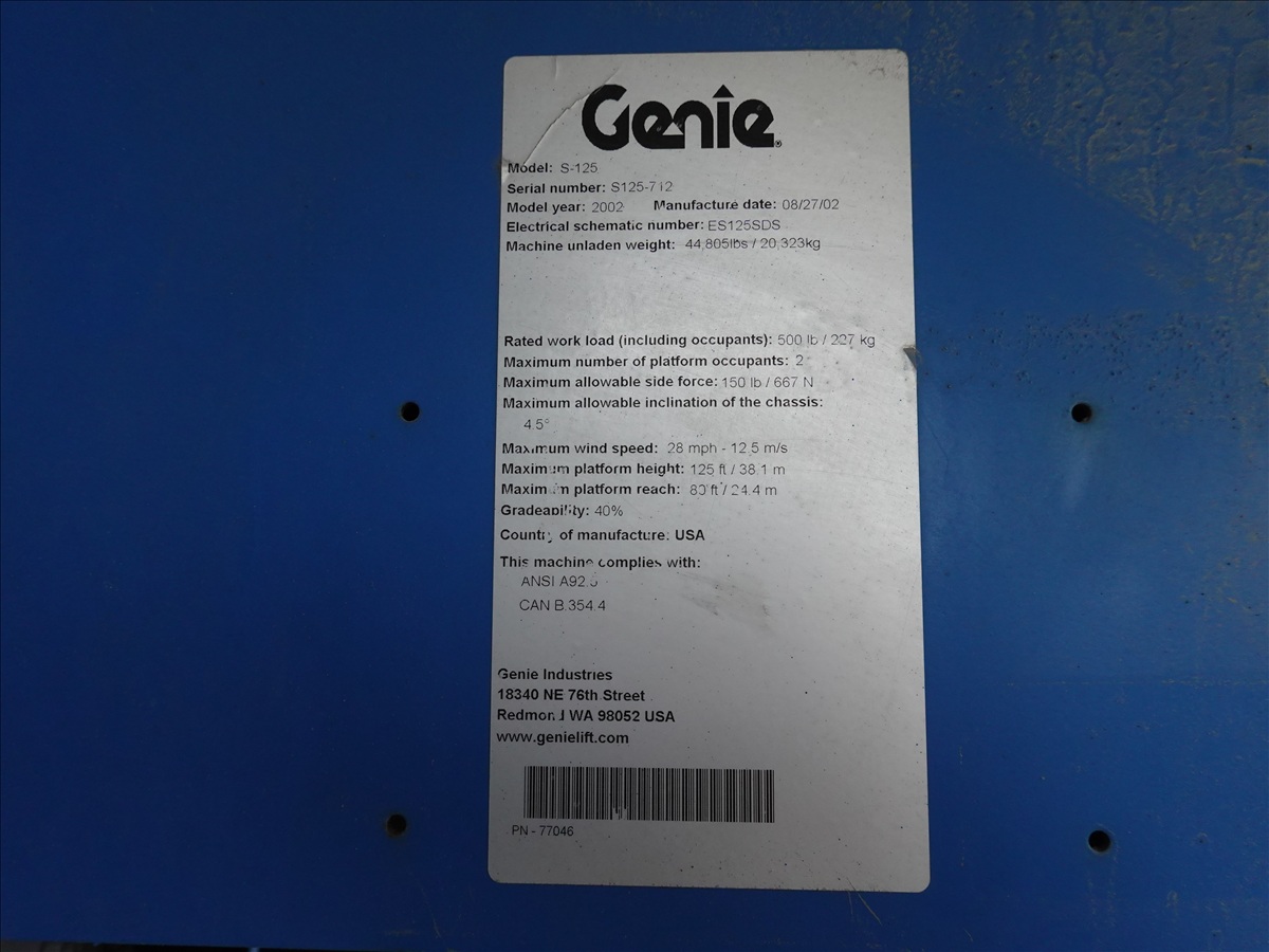 2002 GENIE S-125 TELESCOPIC BOOM LIFT