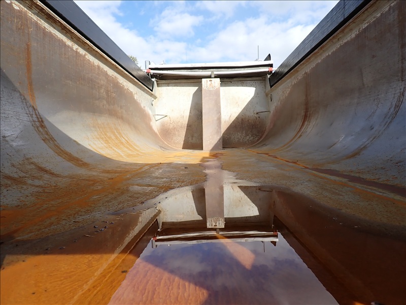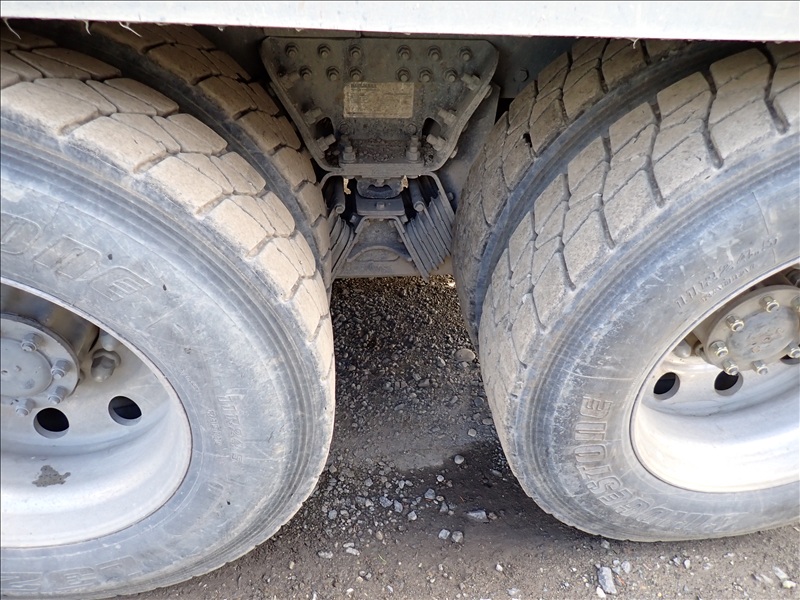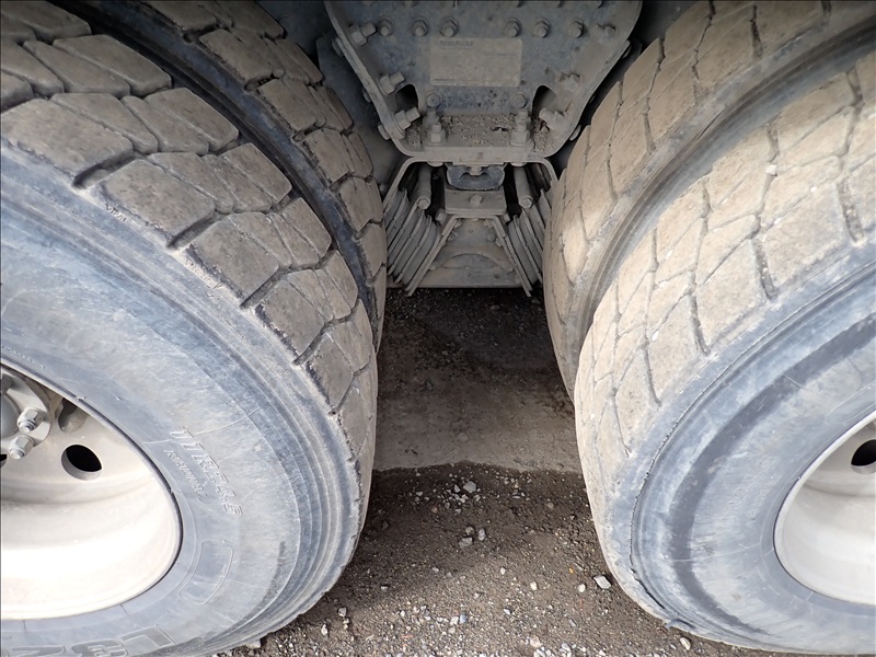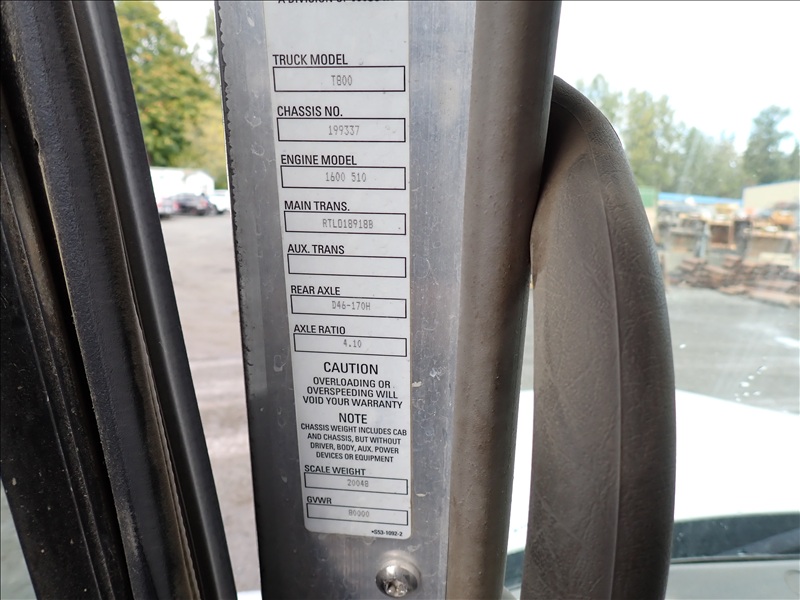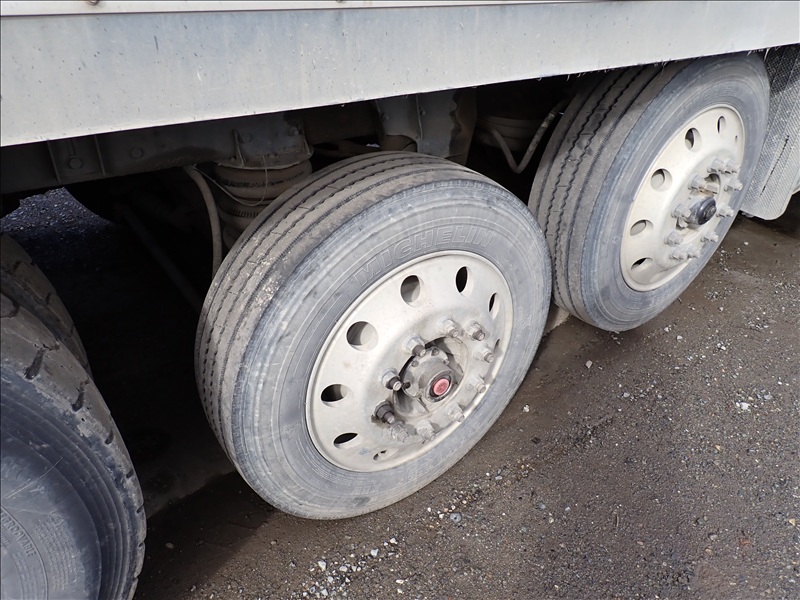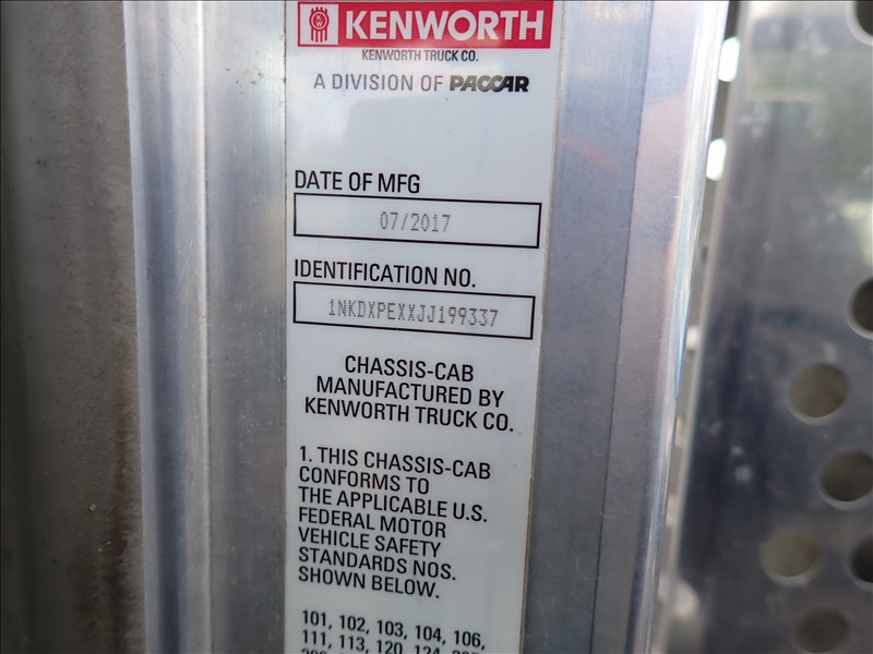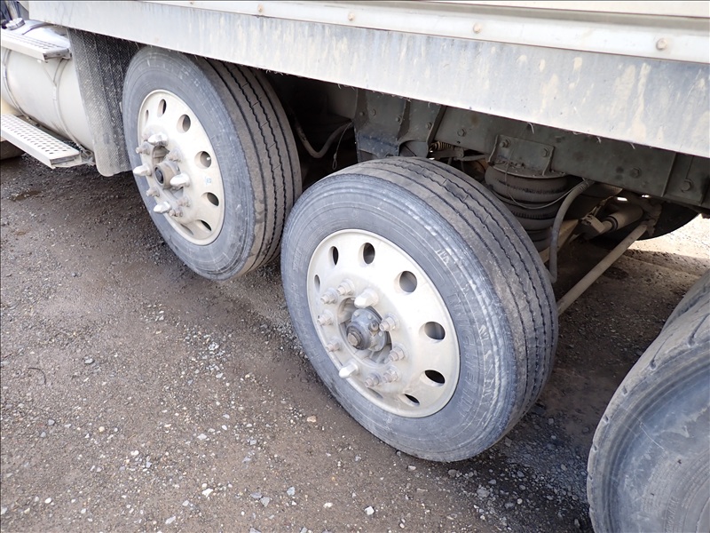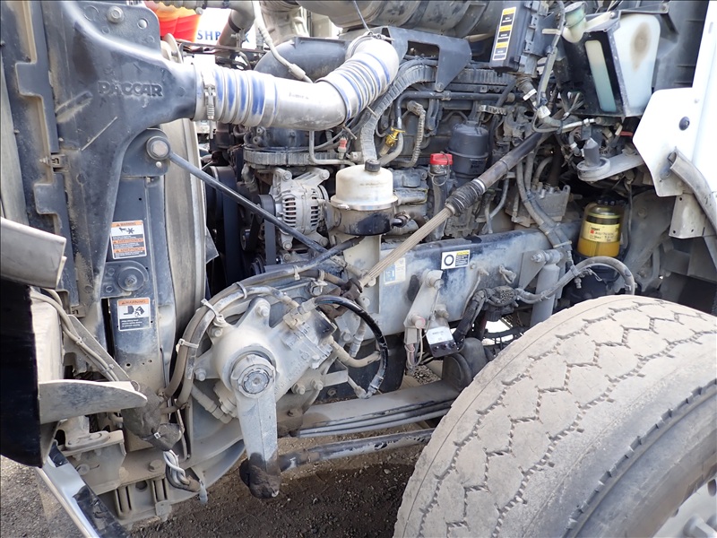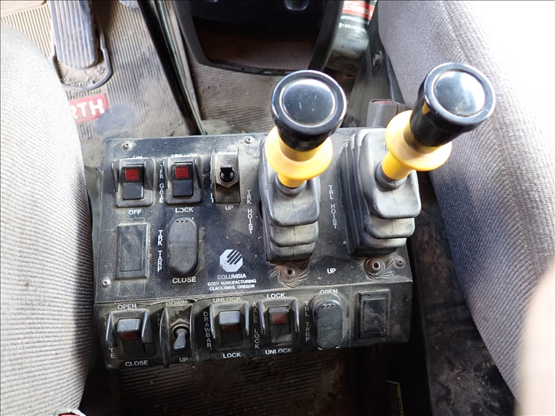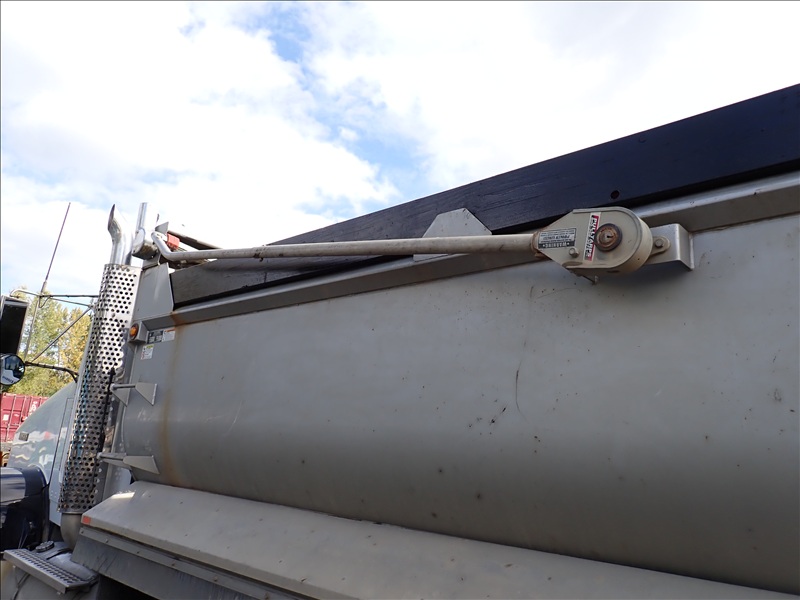 QUAD/A DUMP TRUCK, PACCAR MX13-510HP, RTL018918B-18 SPD, D46-170H-46,000 REARS W/4.10 RATIO, LOCKER, HAULMAX SUSPENSION, 20,000 FRONT, (2) 10,000 DROP AXLES, COLUMBIA 18' STEEL BOX W/HIGH LIFT GATE, AUTO TARP SYSTEM, MATERIAL CHUTE, PLUMBED FOR PUP