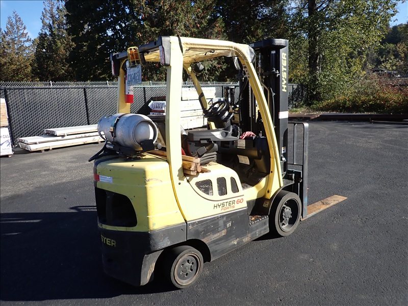 5,950LB CAP. SOLID TIRED FORKLIFT, 187" 3-STAGE MAST, AUX. HYDRAULICS, LUMBER FORKS, SIDE SHIFT, FINGER CONTROLS, PROPANE, S/N: F187V17511J, HRS: 8,800