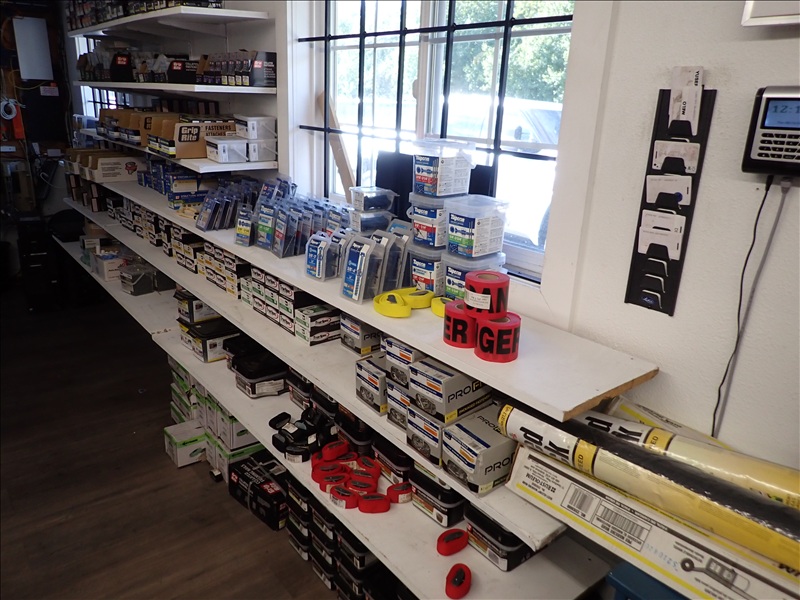 GROUP OF STAINS, NAILS, STAPLES & ROOFING SUPPLY INVENTORY
