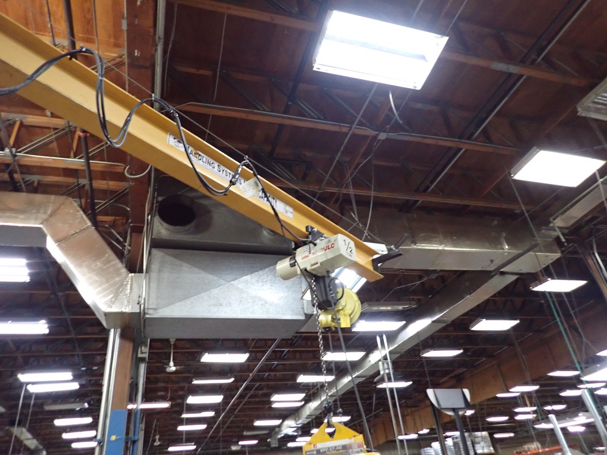1/2 TON CAP., 360 DEGREE FLOOR MOUNTED JIB CRANE W/COFFING CHAIN HOIST