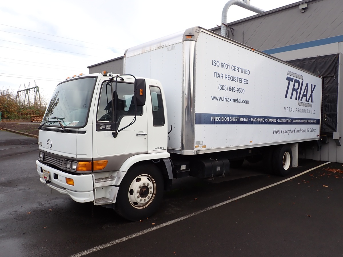 26' S/A C/O BOX TRUCK, DIESEL, AUTO, HEISER BOX, PALFINGER LIFT GATE, S/N: JHBFE2JR012S10633, MILES: 111,800