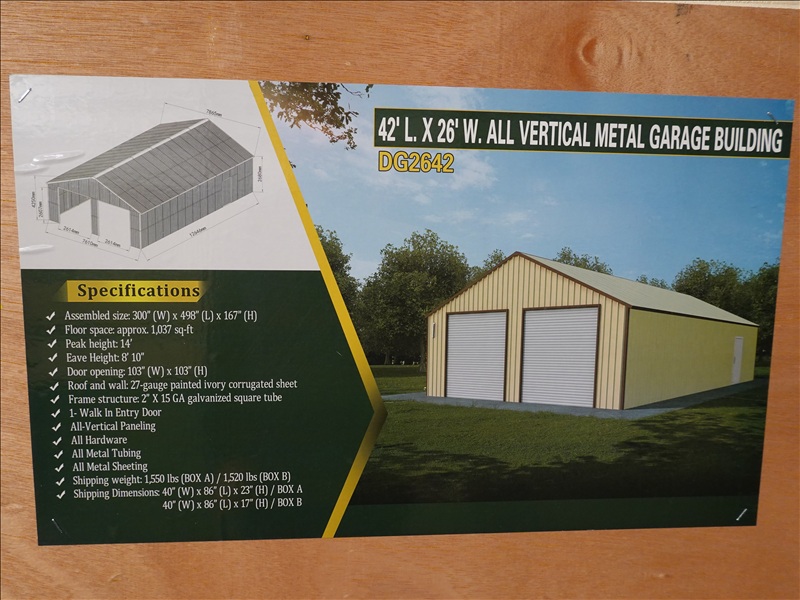42'L X 26'W VERTICAL METAL GARAGE BUILDING