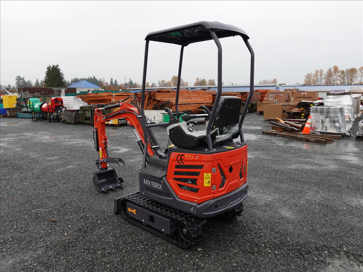 MINI EXCAVATOR, RATO 15 1 CYL GAS, SWING BOOM, 14" BUCKET, THUMB, AUX HYD, BLADE, RUBBER TRACKS, CANOPY