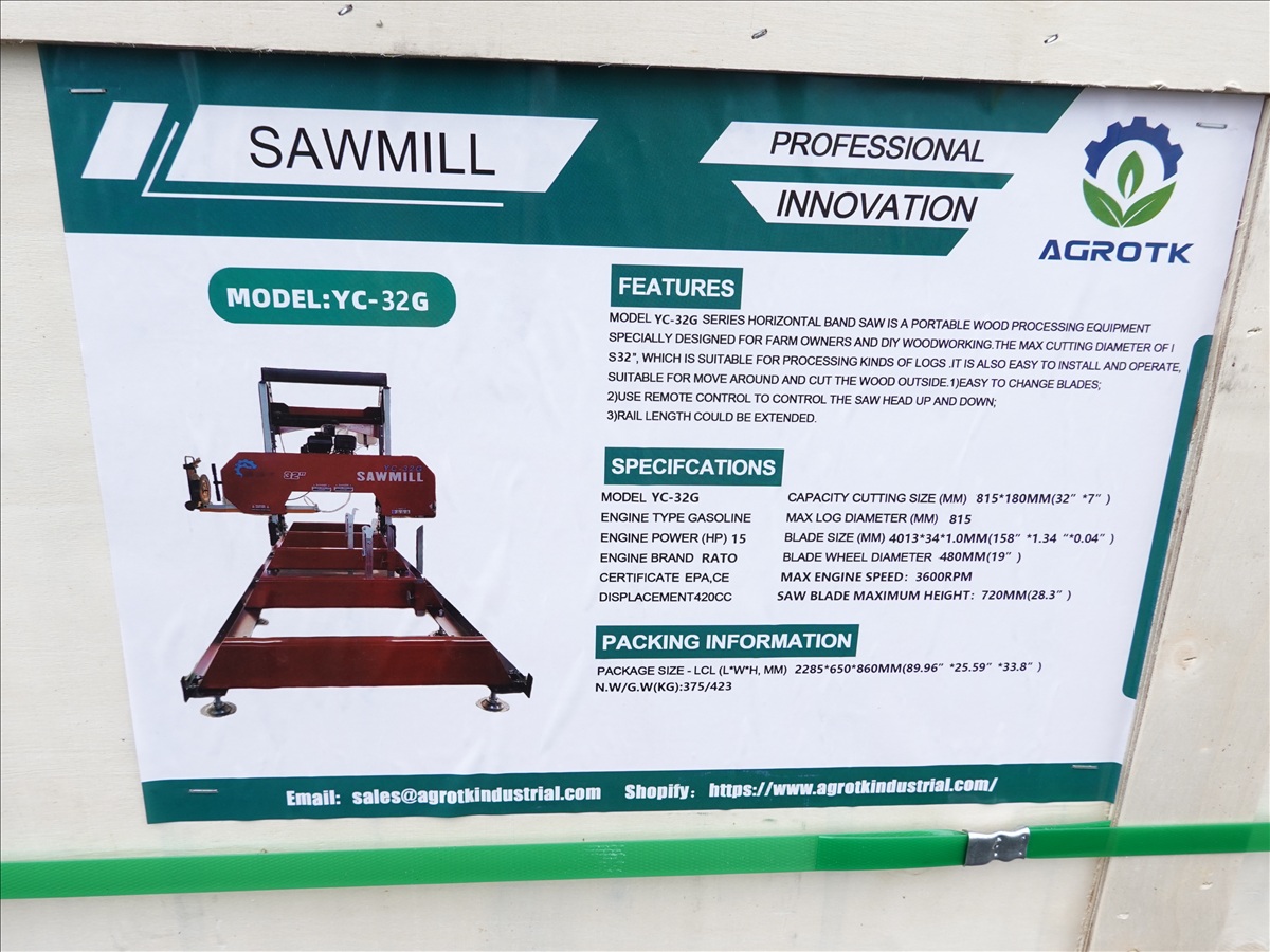 32" CAP SAWMILL W/15 HP RATO GAS ENGINE